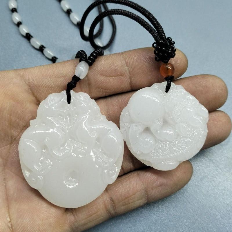 Elevate your style with this boho dragon and phoenix pendant necklace made of artistic stone featuring intricate carvings. Ideal for daily wear and holiday celebrations, this unique piece also makes a perfect gift.