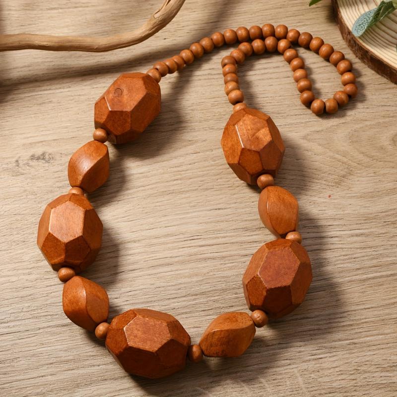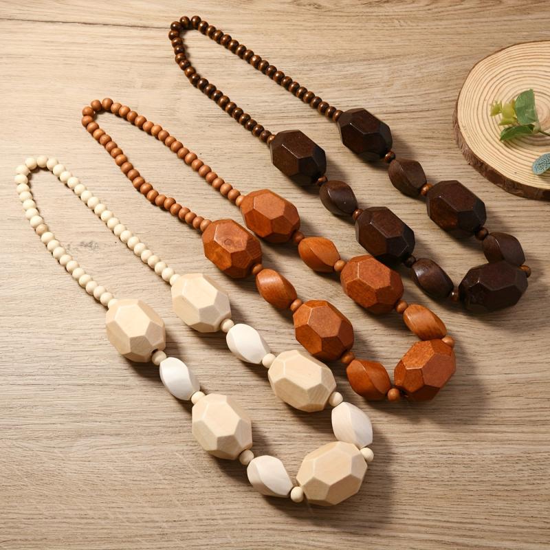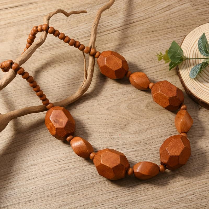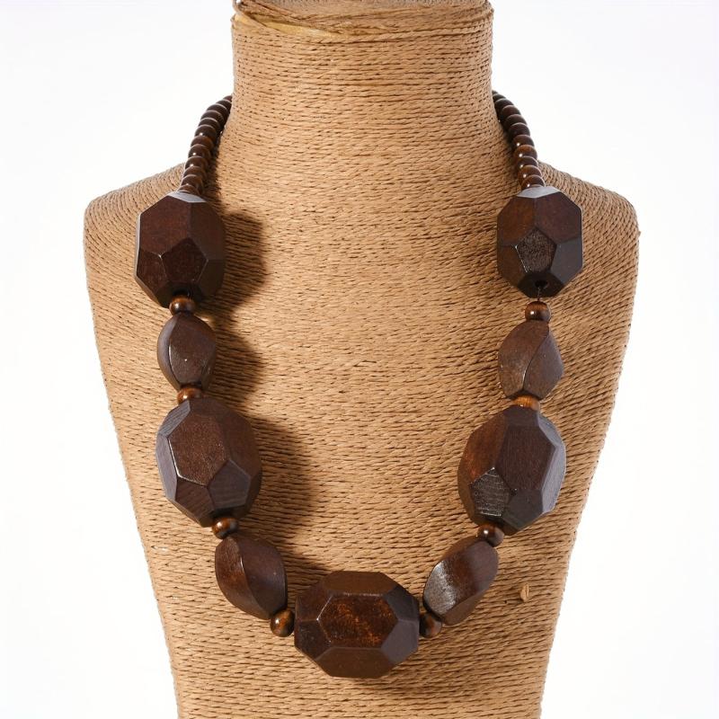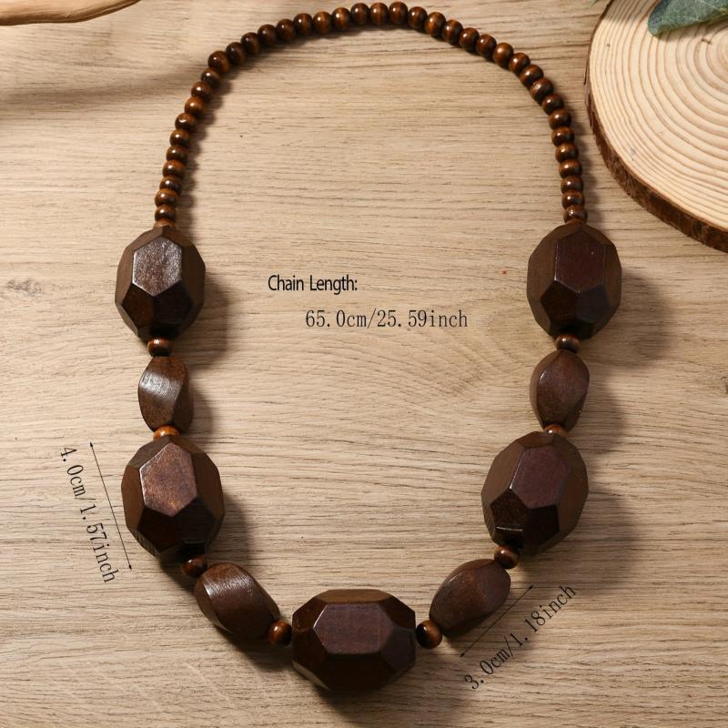 Enhance your daily looks with this vintage-inspired wooden pendant necklace. The boho style and natural wood finish make it a versatile accessory for any outfit.