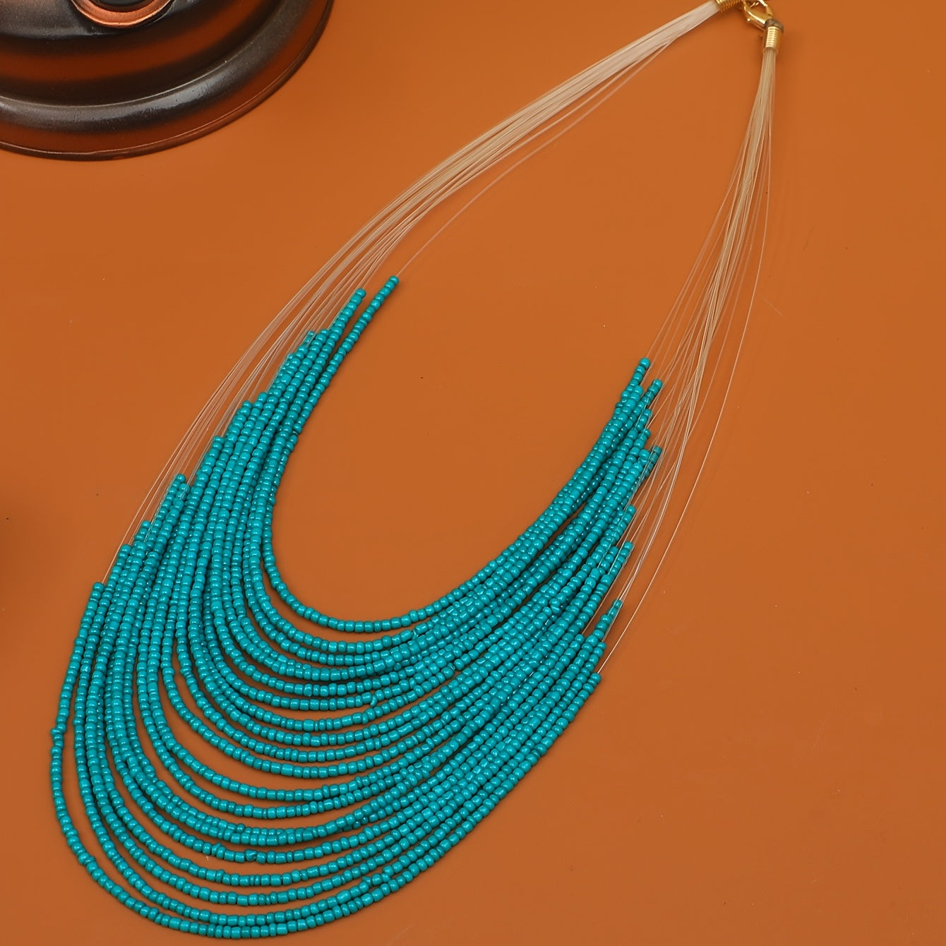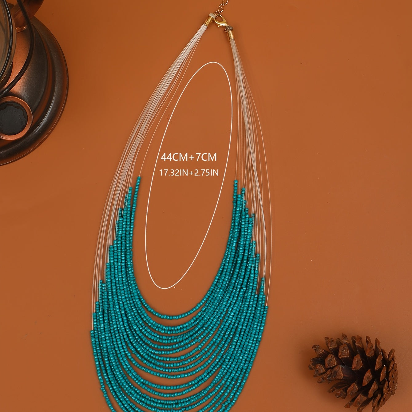 Add a touch of boho chic to your outfit with this multilayer green rice bead long necklace. Perfect for parties!
