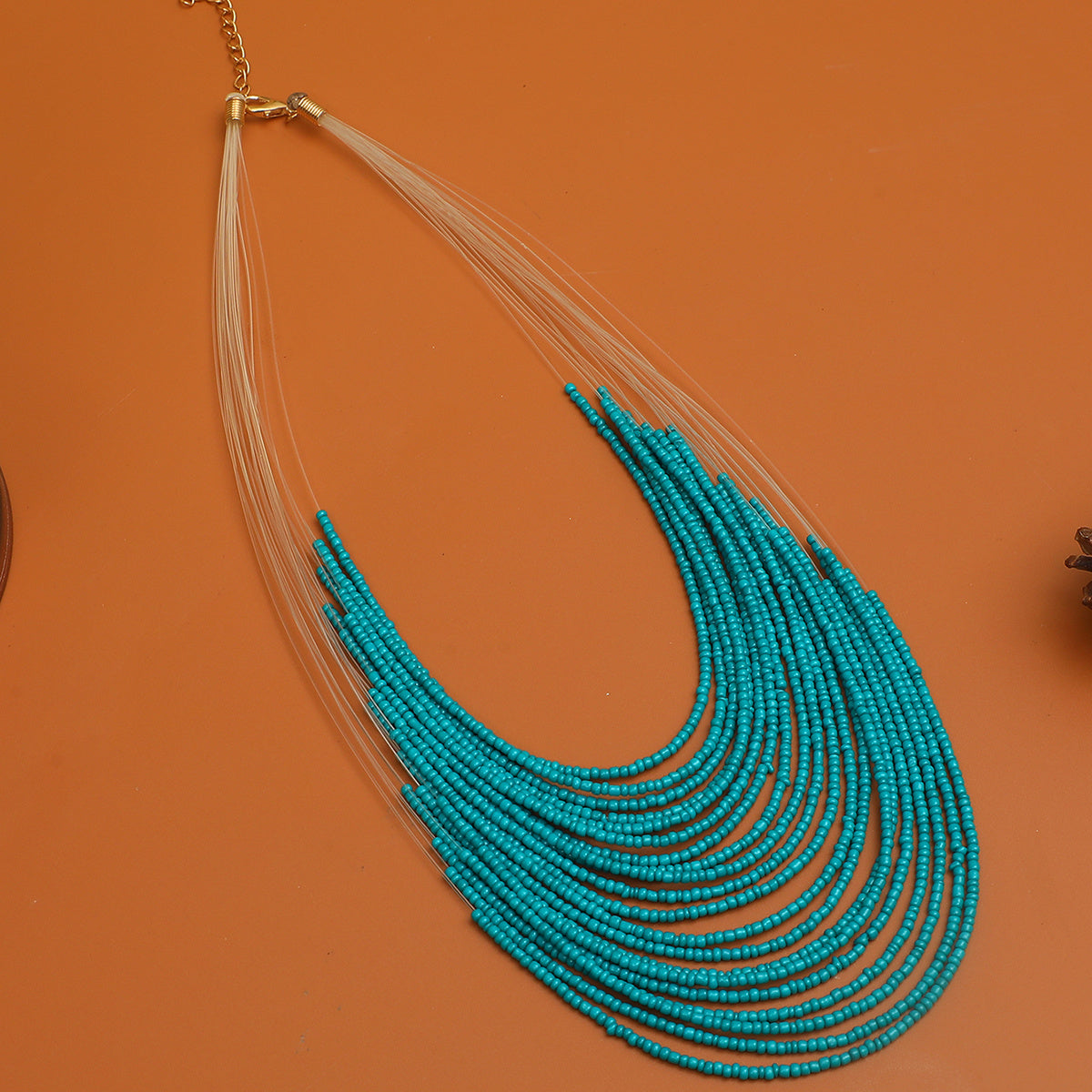 Boho Multilayer Green Bead Necklace Female Party Jewelry