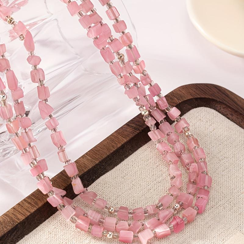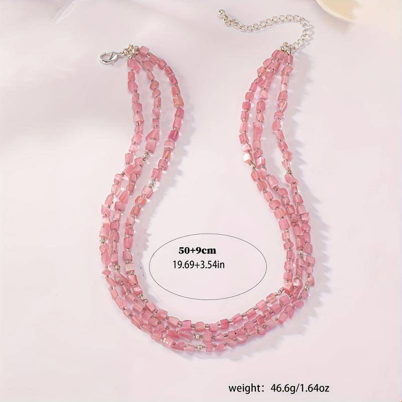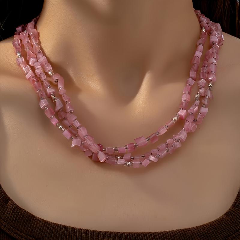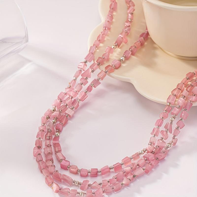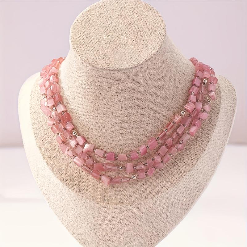 Elevate your casual attire with this boho layer necklace featuring pink cat's eye stone beads. It's a perfect accessory or gift for women.