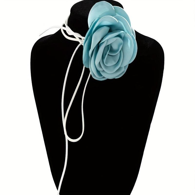 Elevate your vacation style with this stunning rose flower collar necklace. Handcrafted with vibrant floral flannelette, this multicolor neck chain adds a touch of bohemian charm to your ensemble.