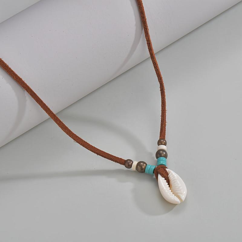 This bohemian folk style necklace is perfect for summer vacation, daily wear, or as a lucky gift. The intricately woven design with artificial shell beads adds a touch of boho charm to any outfit.