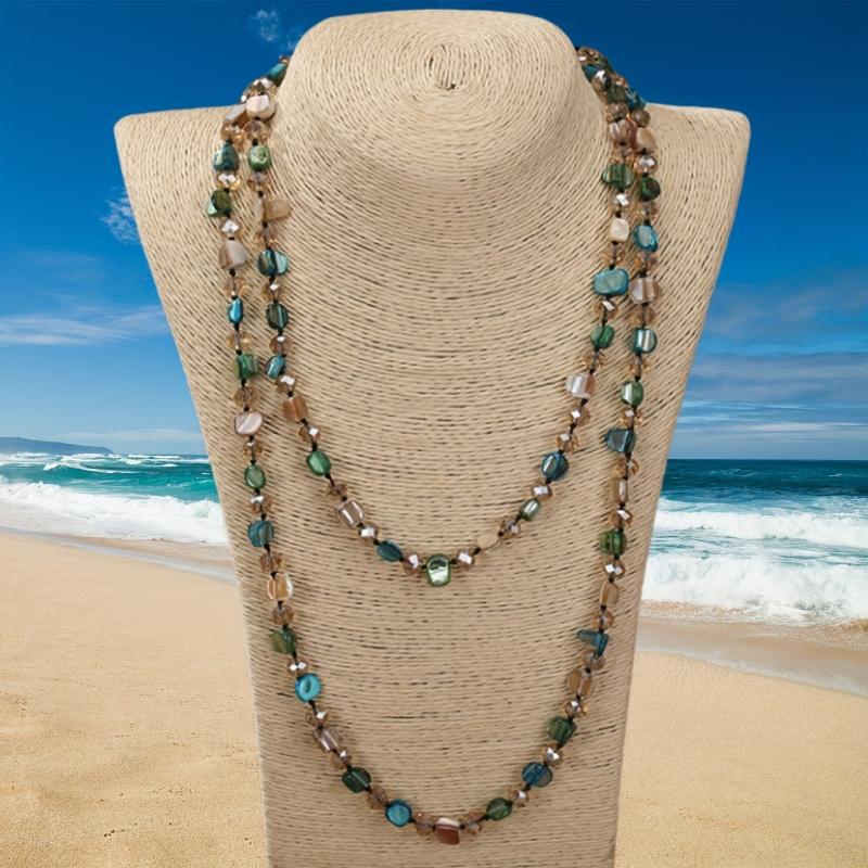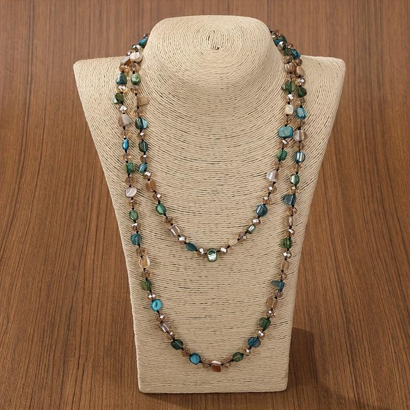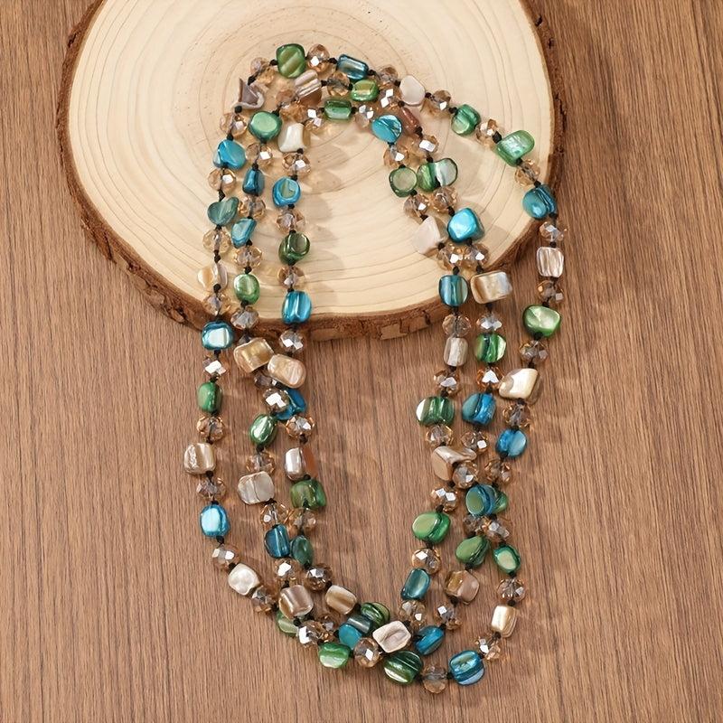 Elevate your casual outfit with this boho-inspired beaded necklace featuring multi-color gemstone accents. Perfect for travel, parties, and everyday wear.