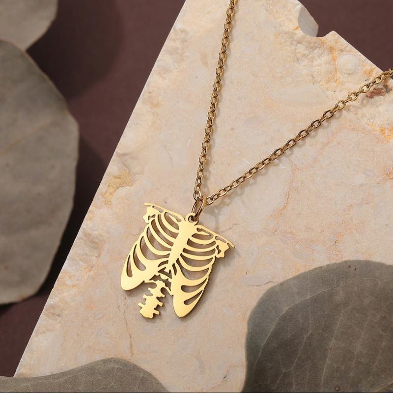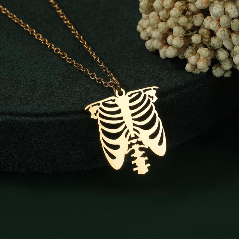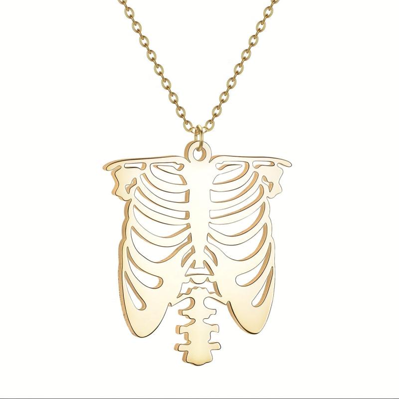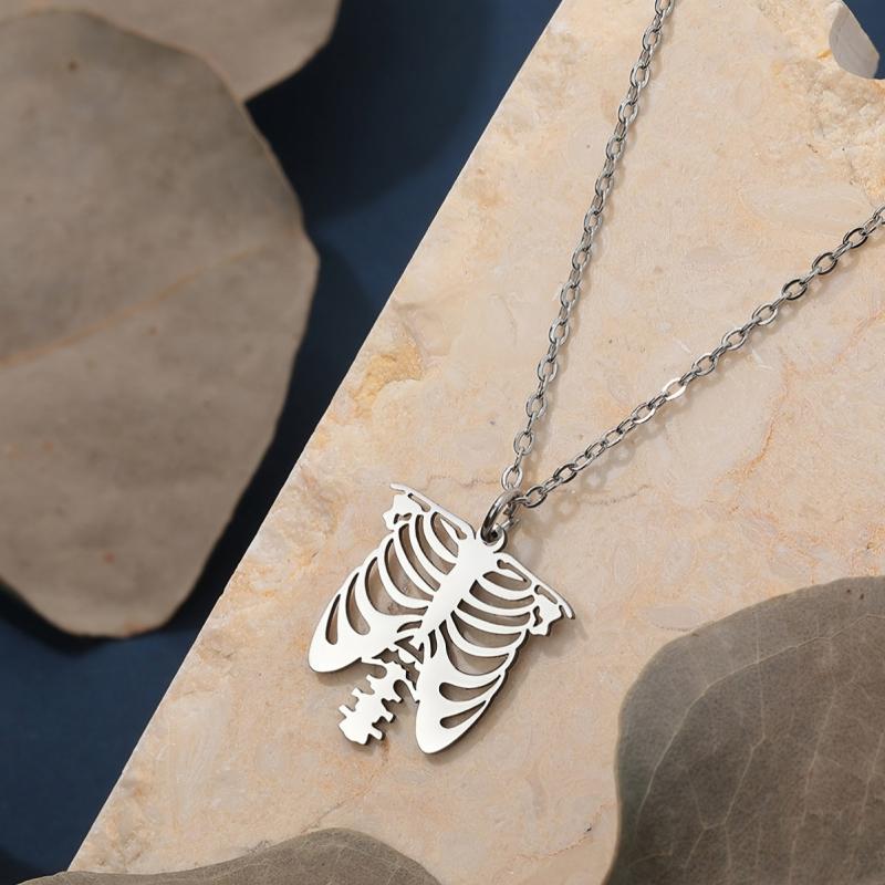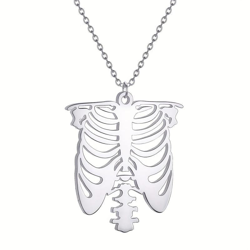Get into the Halloween spirit with this Boho Skeleton Ribcage Choker Necklace. Made of durable stainless steel, this necklace is a perfect spooky accessory or gift for the holiday season.