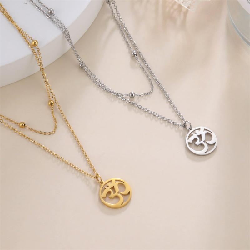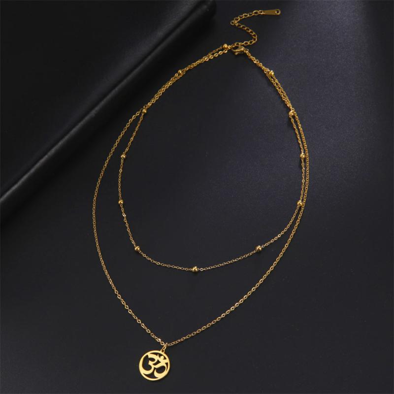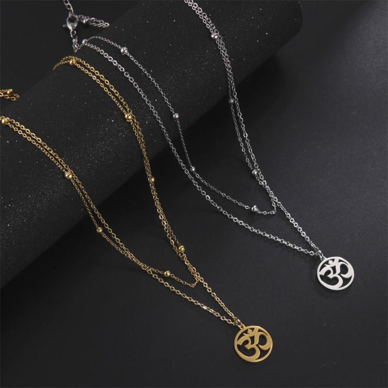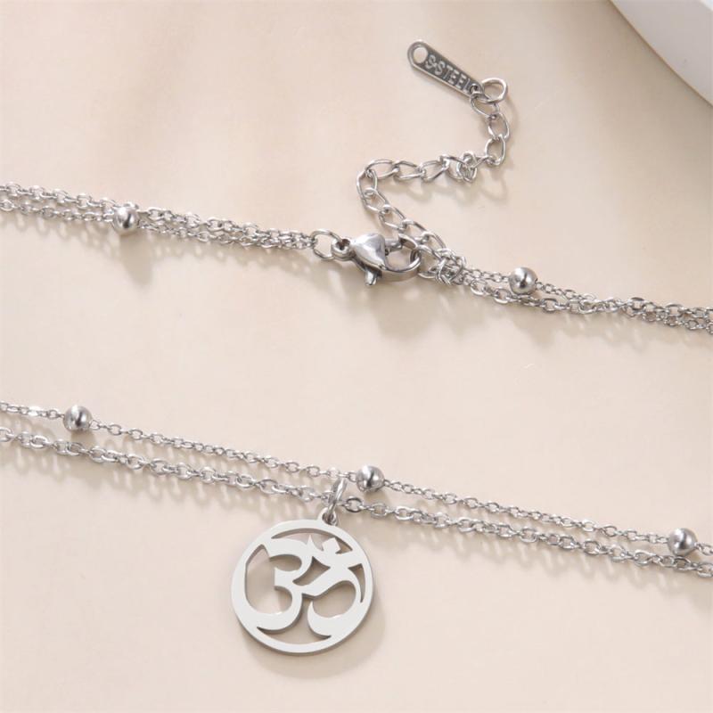 Embrace boho style with this stainless steel necklace featuring an Om Chakra yoga pendant. A double layer design with beaded accents makes it a versatile unisex accessory.