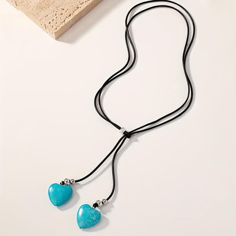 Elevate your look with this vintage bohemian style heart necklace and earrings set that adds a touch of charm and elegance to any outfit.