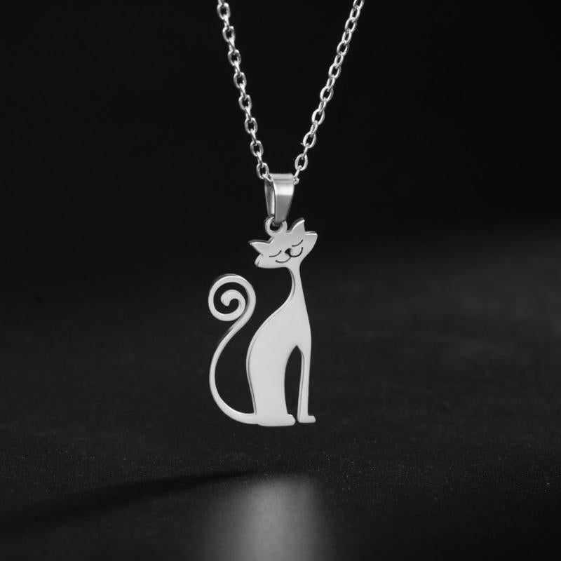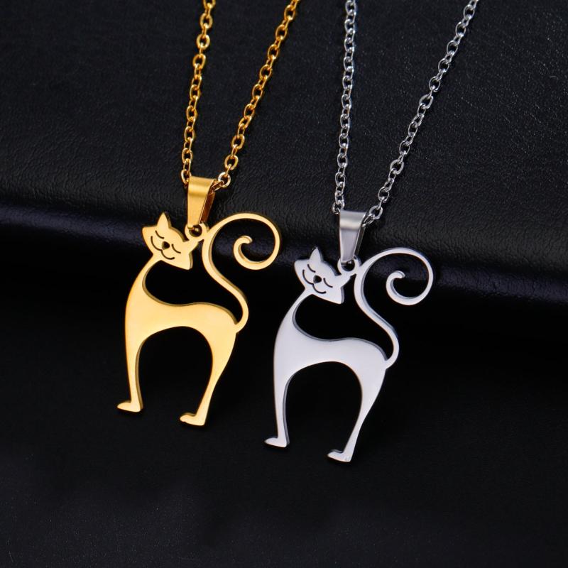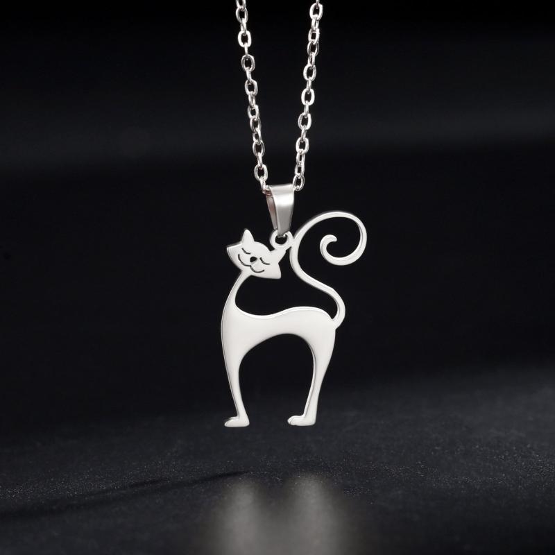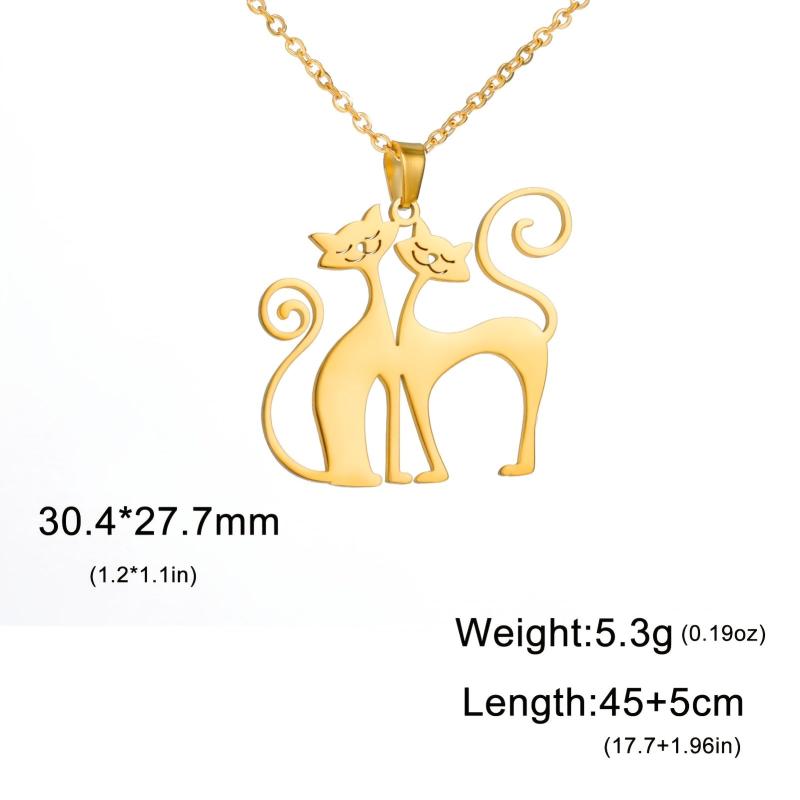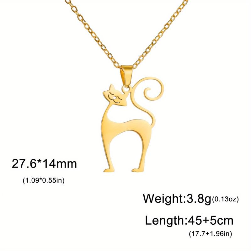 This KKJOY pendant necklace features a funny cat design, perfect for animal lovers. Made of stainless steel with 18K golden plating, the chain is suitable for both men and women.