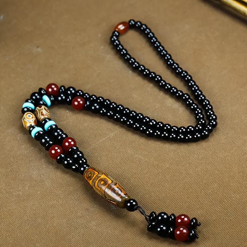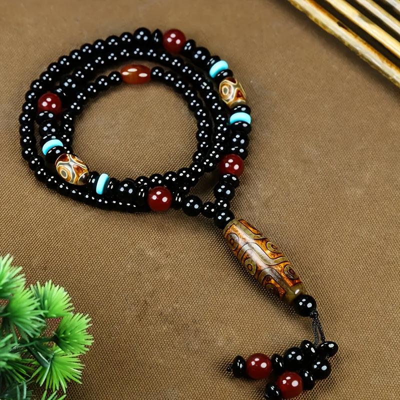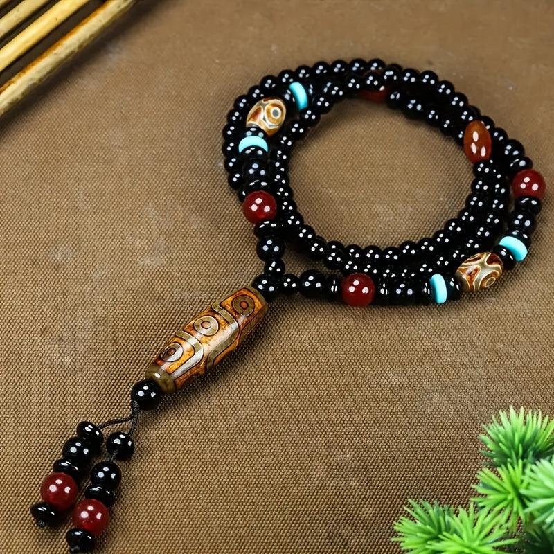 This boho style necklace features Himalayan crystal beads, agate, and brown beads, making it a perfect spiritual amulet for men. It's a great gift for him to enhance his Boho jewelry collection with an ethnic touch.