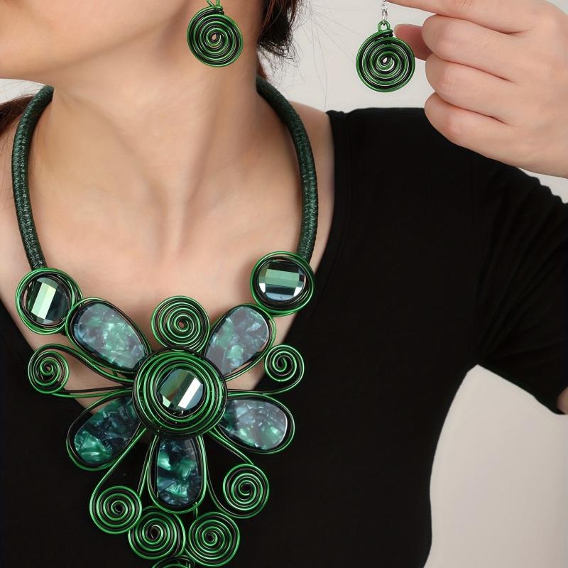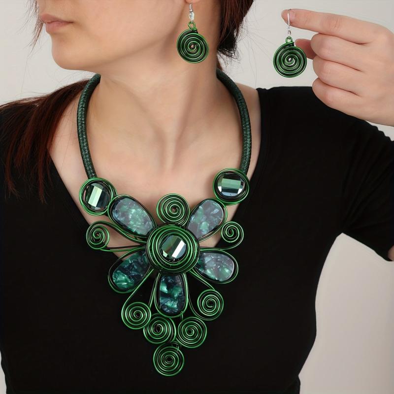 Elevate your look with this stunning boho style jewelry set, perfect for weddings and parties. Featuring tribal-inspired earrings and necklace that will make you stand out.