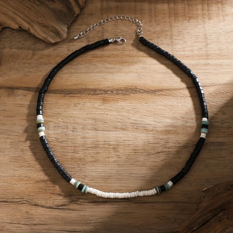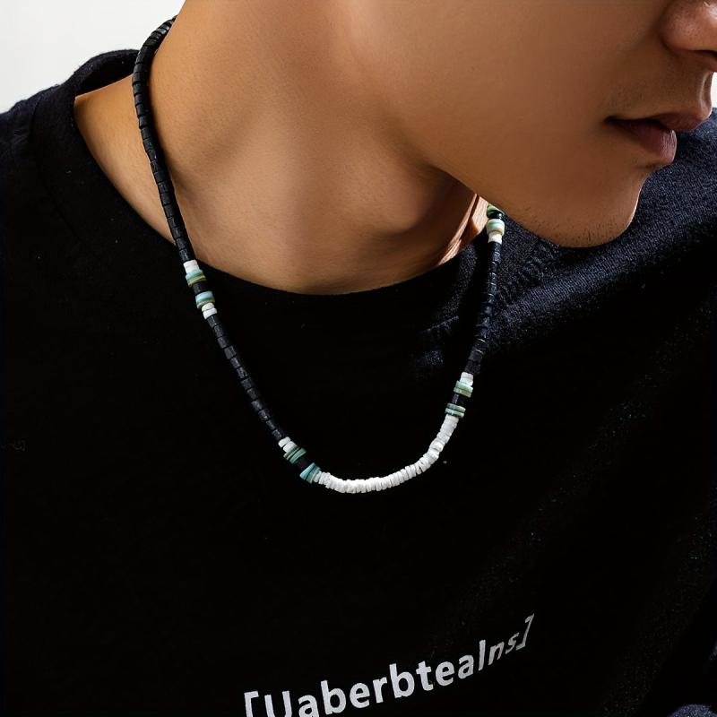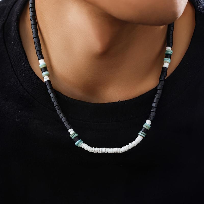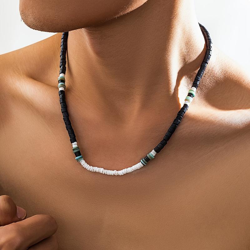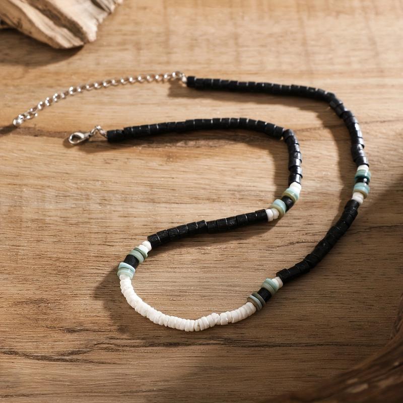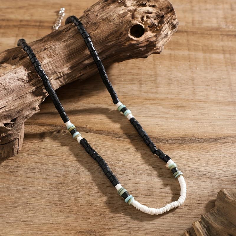 This Boho style men's necklace features wooden beads and is perfect for a surfer look. The clavicle chain is a great gift for men and is uncoated for a natural feel.