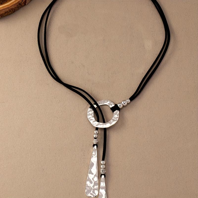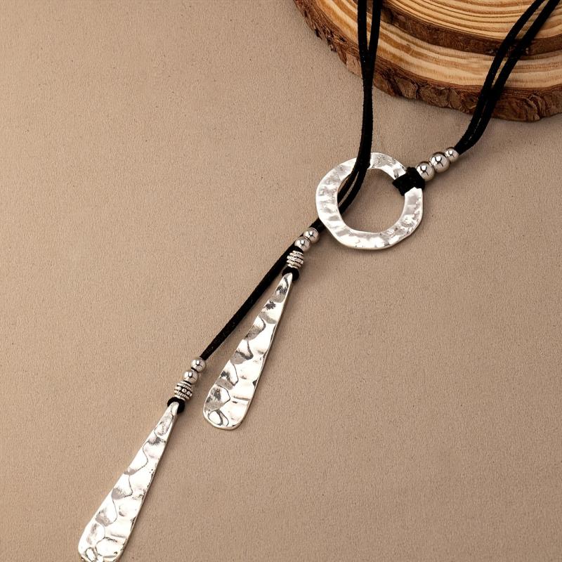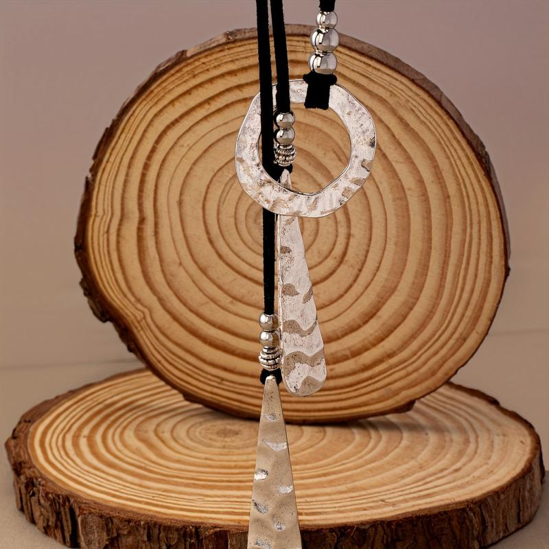 Add a touch of vintage Western Bohemian charm with this long metal teardrop pendant necklace.