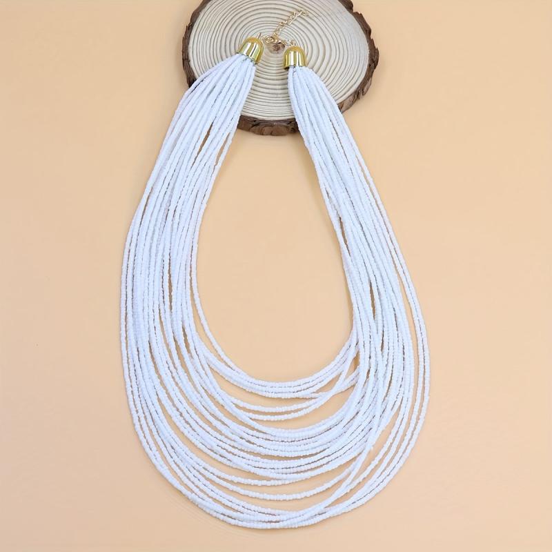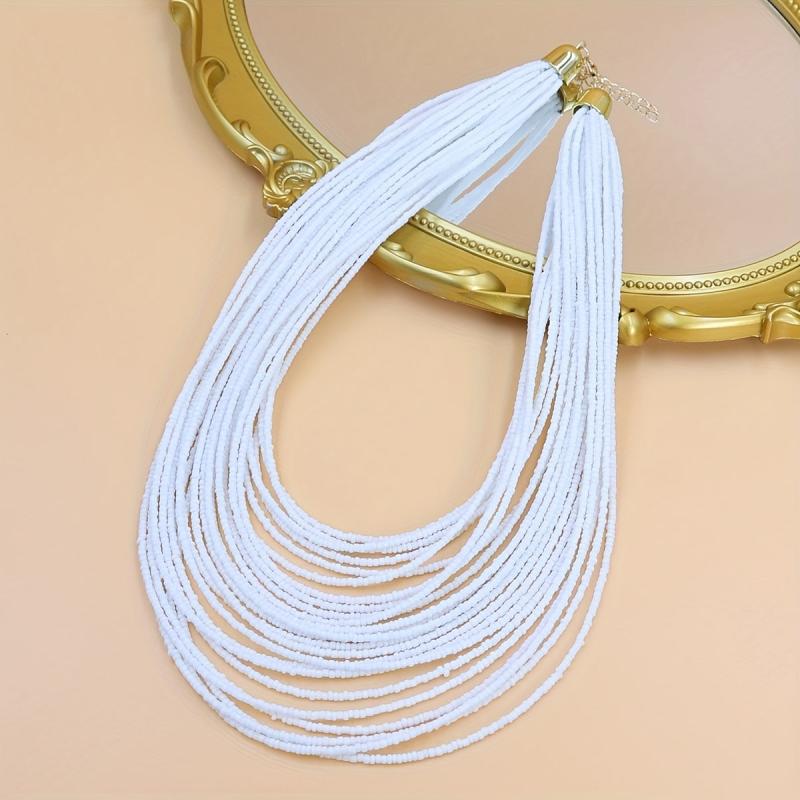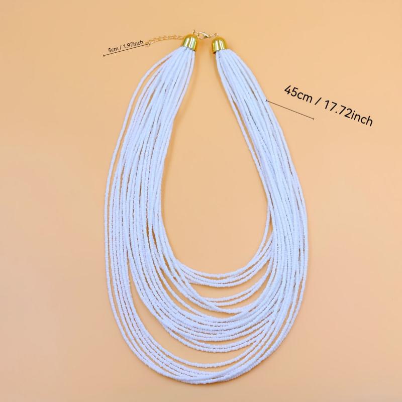 Add a pop of color with this retro bohemian necklace featuring multiple layers of vibrant orange beads. Perfect for casual wear, it adds a vintage touch to your everyday look.