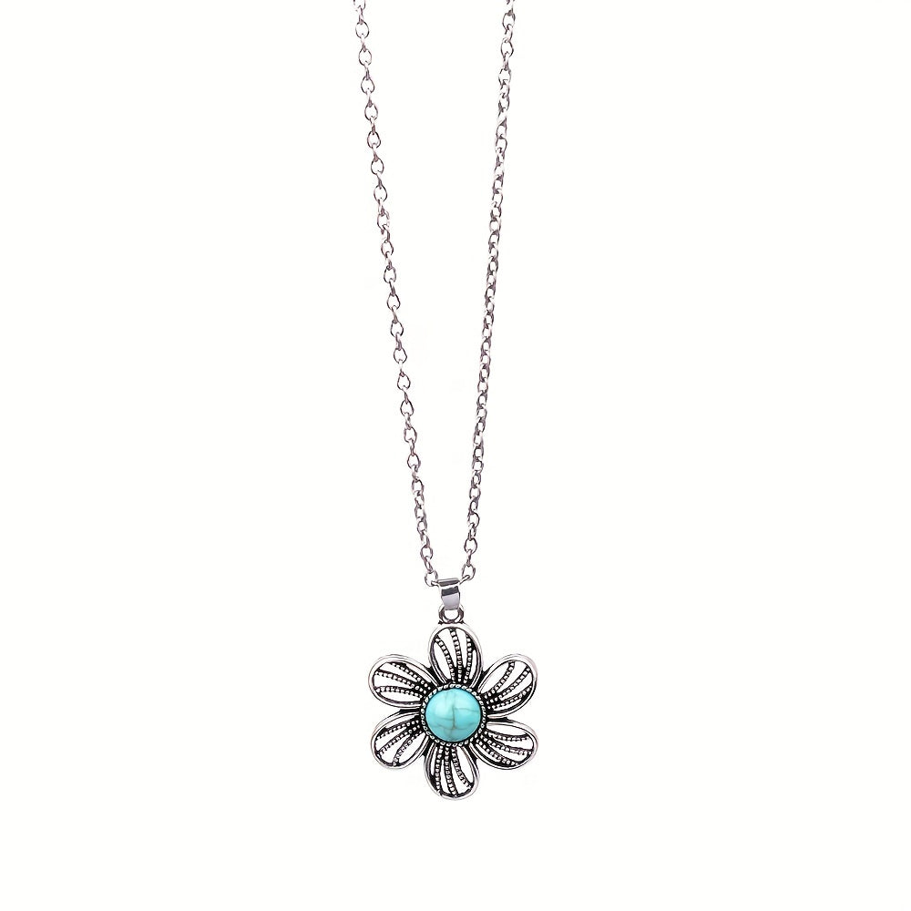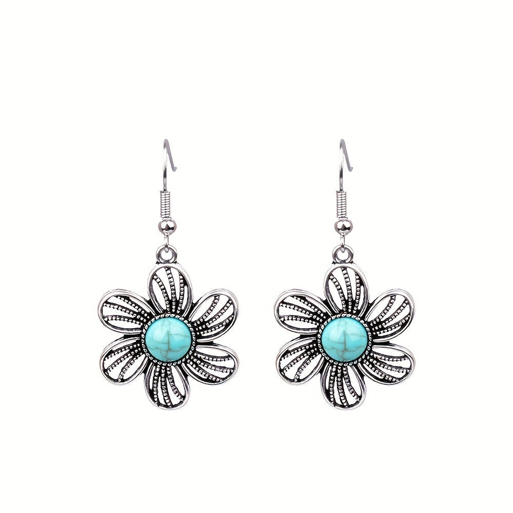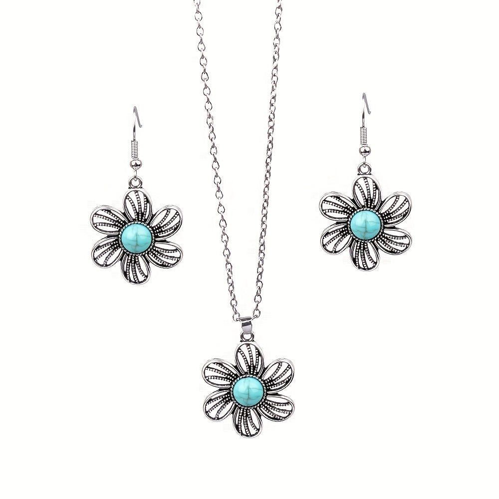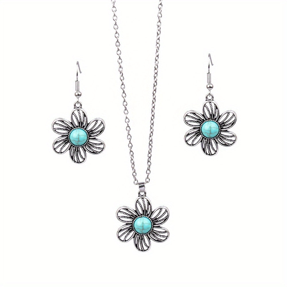 This 3-piece set includes earrings and a necklace with a dainty turquoise flower design. Perfect for daily outfits or adding a touch of boho style to your party look.