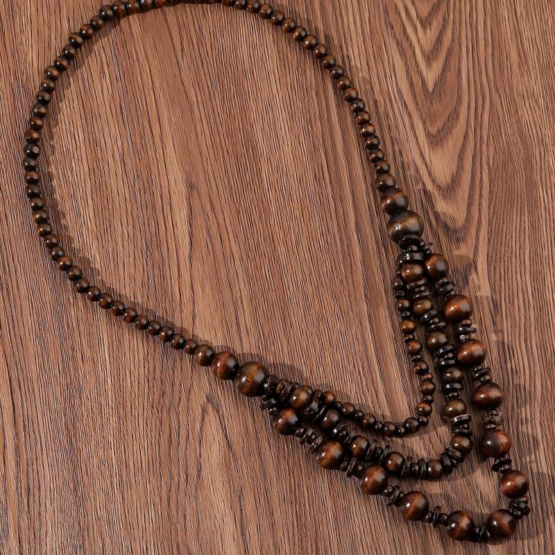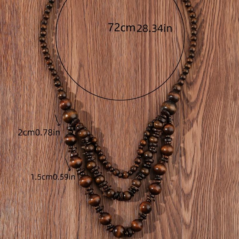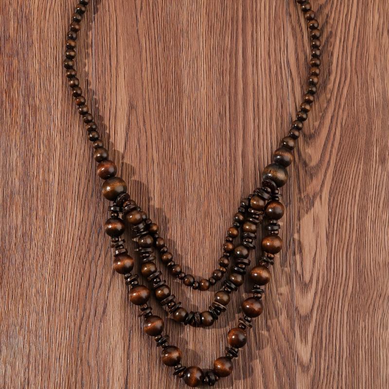 This layered beaded necklace features high-quality recycled wood beads in earthy brown tones. It is a versatile everyday jewelry piece and makes a perfect gift for women.