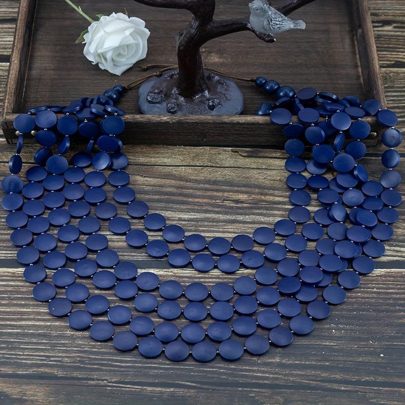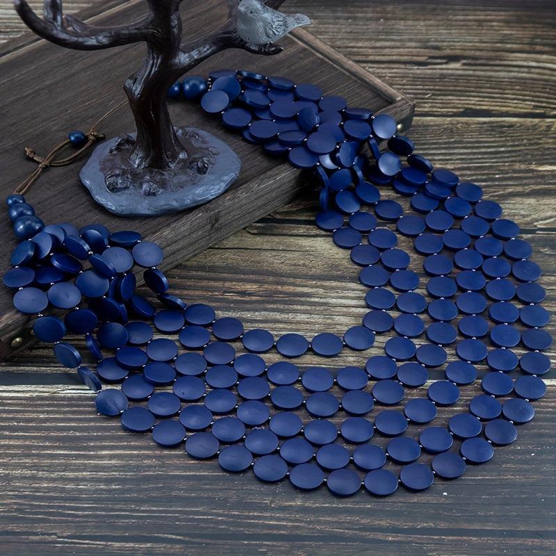 Elevate your style with this bohemian wooden bead necklace featuring synthetic December birthstone and irregular wood pieces. Perfect for daily wear or special occasions.