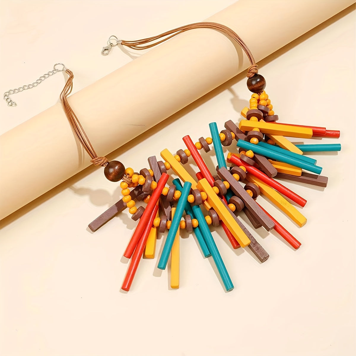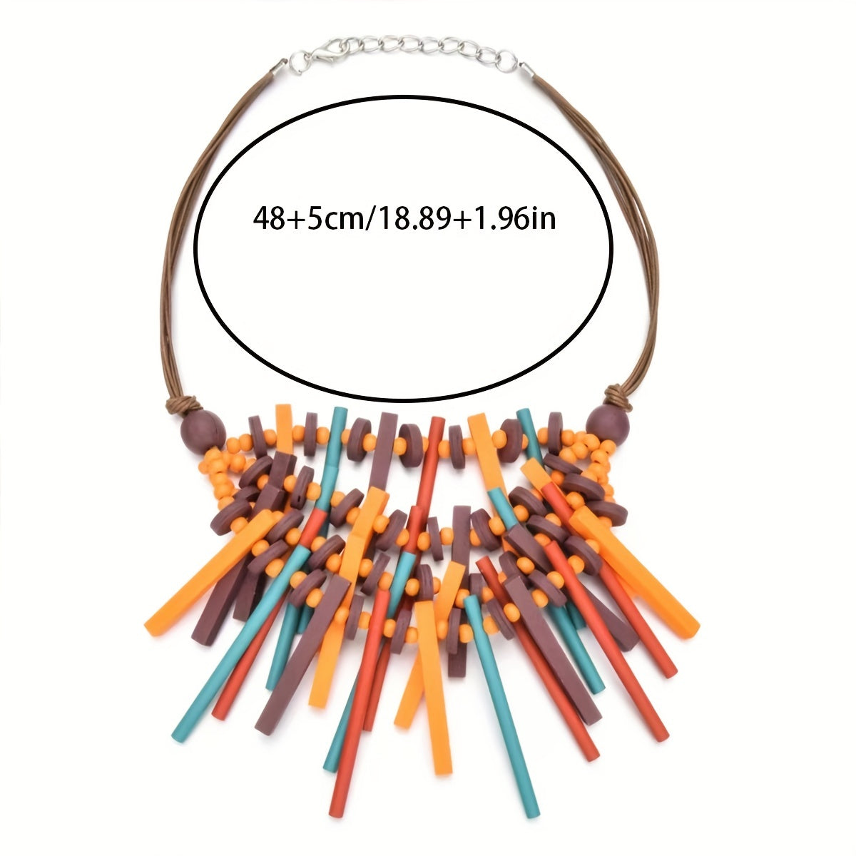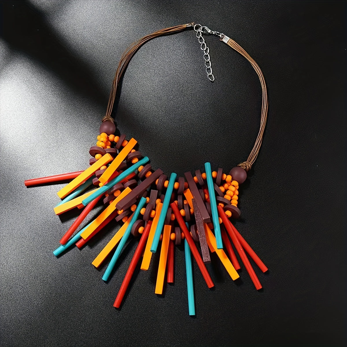 Make a statement with this bohemian style multilayer necklace featuring colorful coconut shell and wooden beads. The exaggerated design adds a vintage touch to your look.