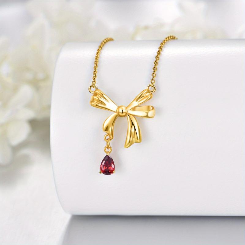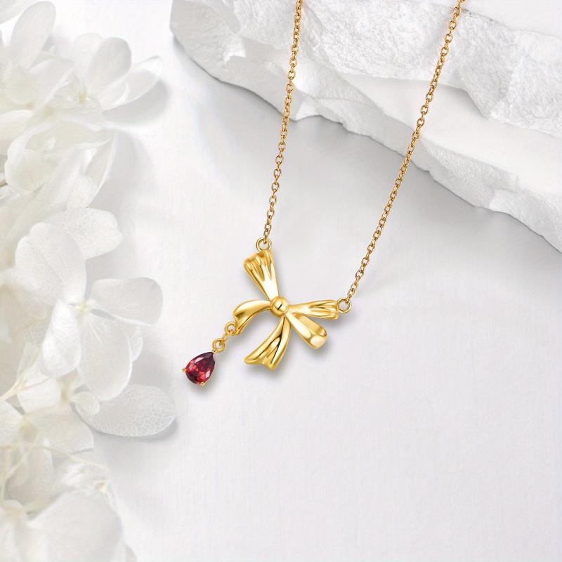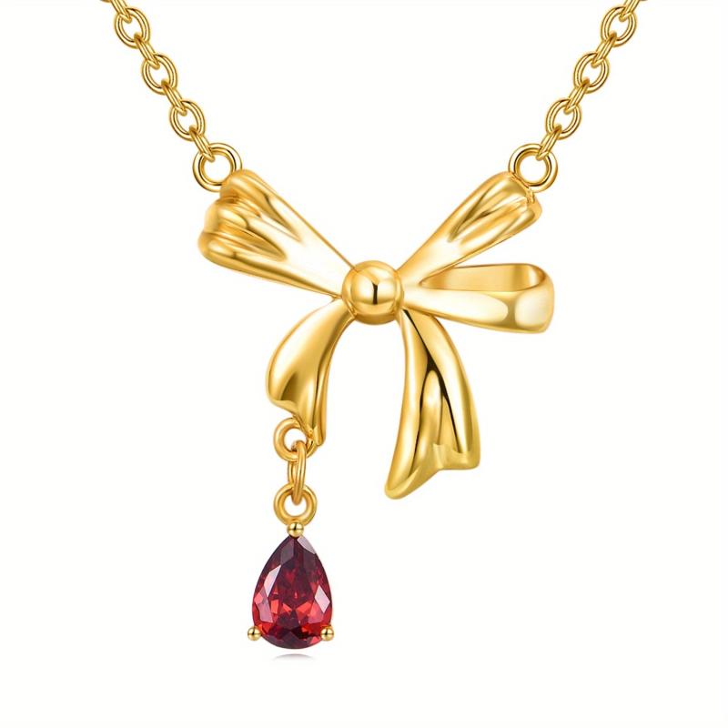 Golden necklaces jewelry featuring a red zirconia pendant, perfect for women and daughters on birthdays.