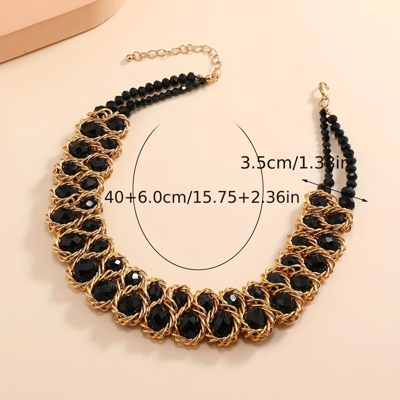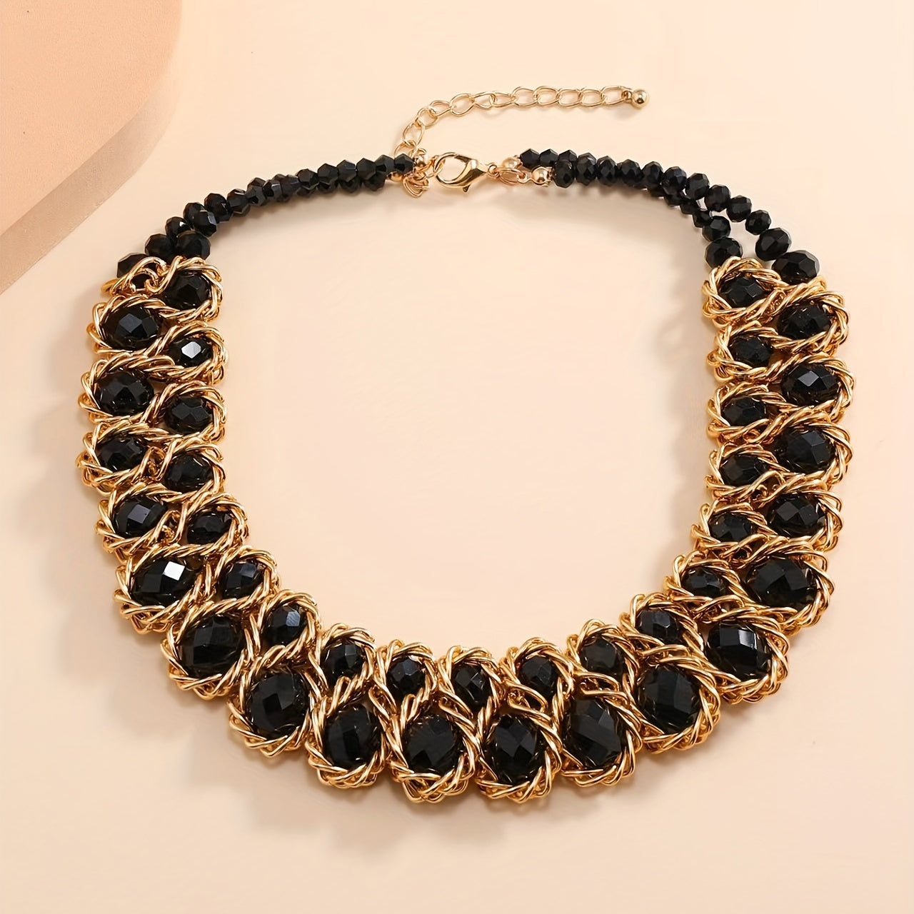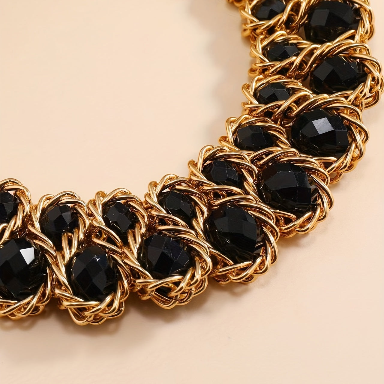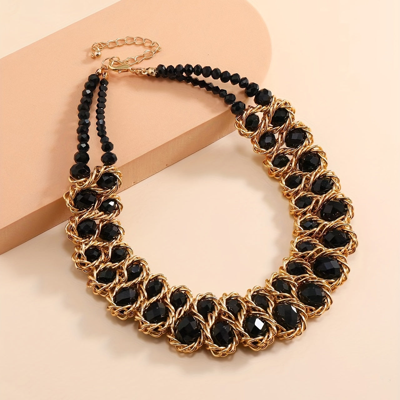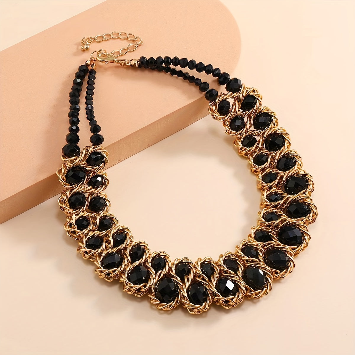 Elegant two rows braided string necklace adorned with artificial crystals for a stylish look.