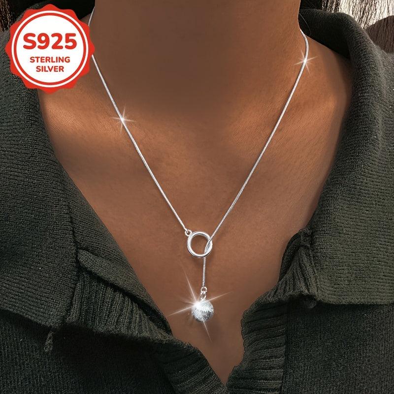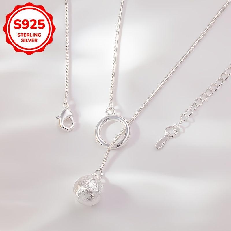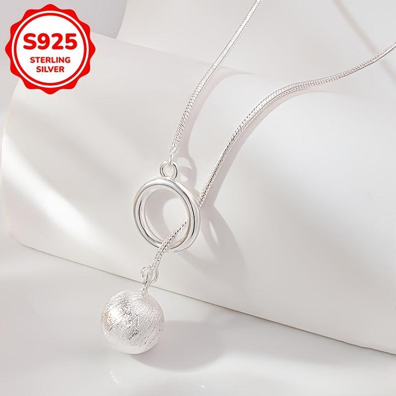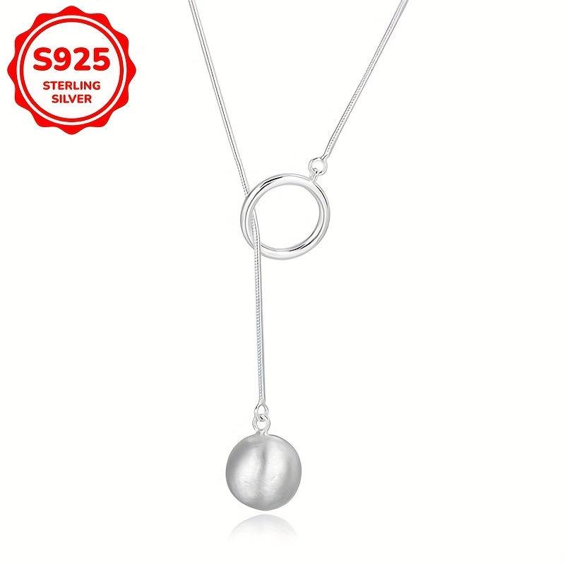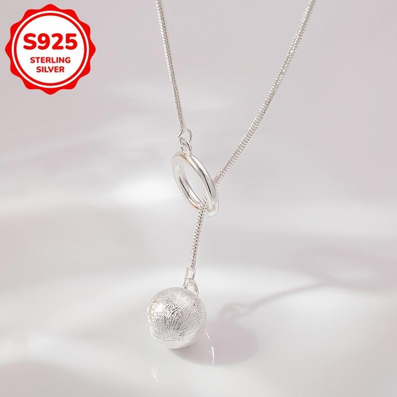 Elevate your style with this chic pendant necklace that features a round brushed silver ball design. Made of 925 sterling silver, this collarbone chain is lightweight and perfect for daily wear.