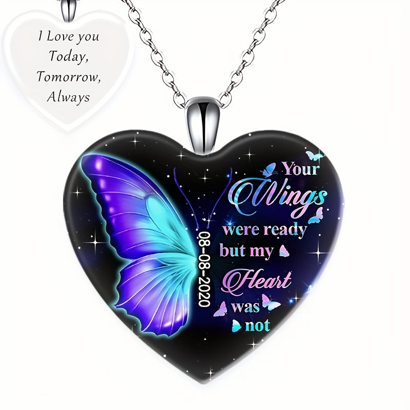 Elegant heart-shaped pendant featuring a delicate butterfly pattern, perfect for Christmas, banquets, birthdays, and holiday parties.