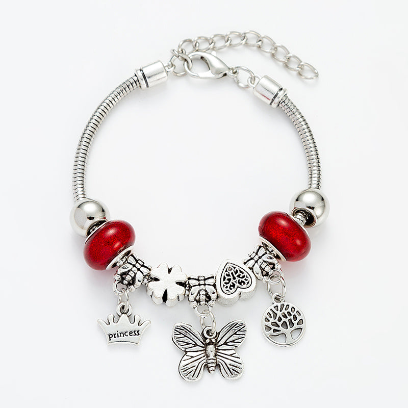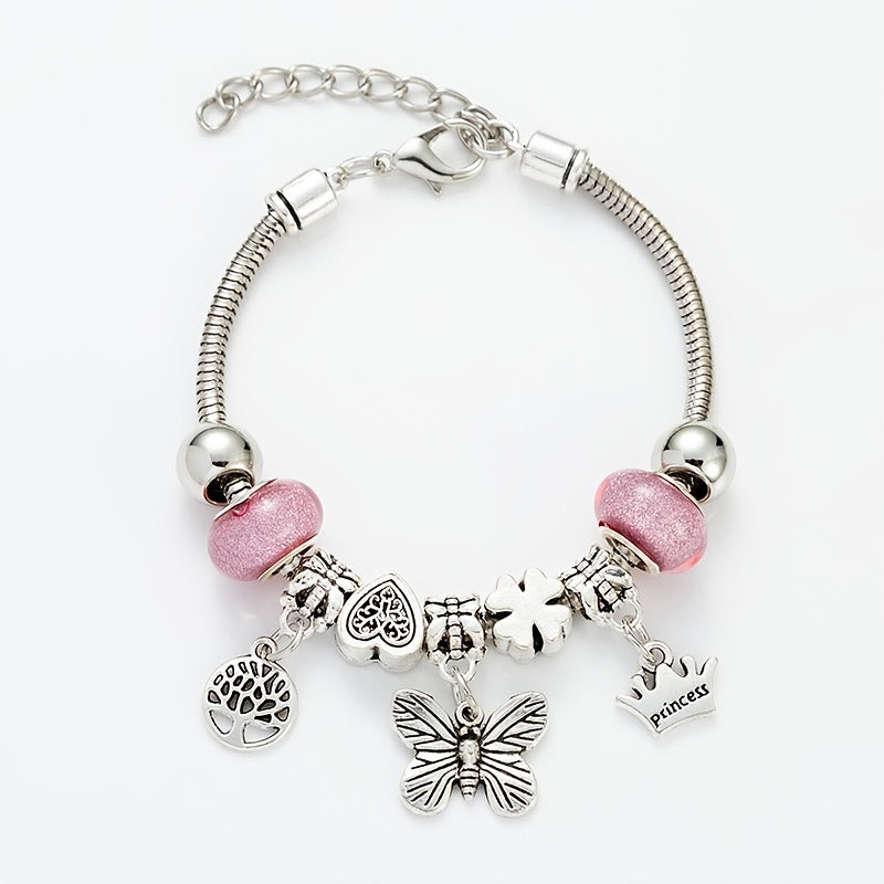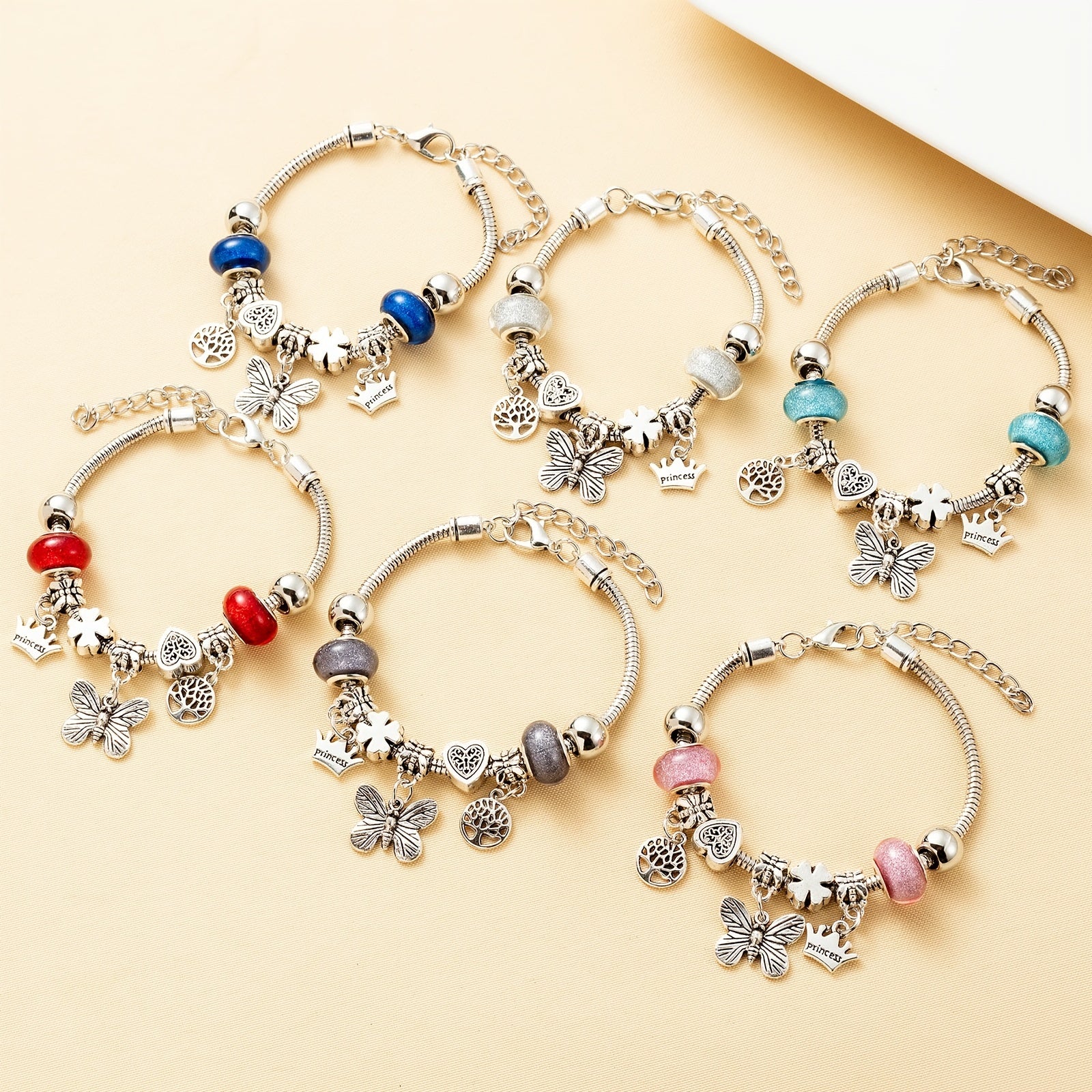 This beaded bracelet features a charming butterfly pendant and is adjustable for a perfect fit. Choose from various multicolor options to match your style. Makes a great gift for friends!