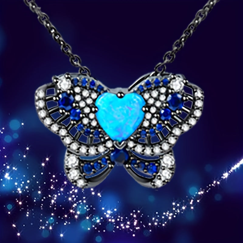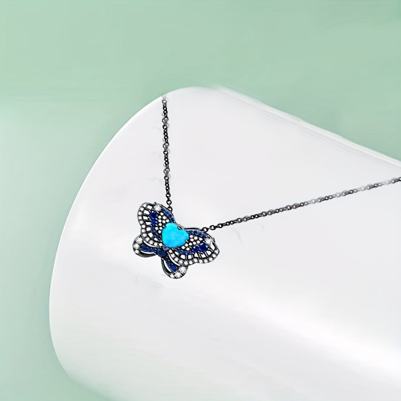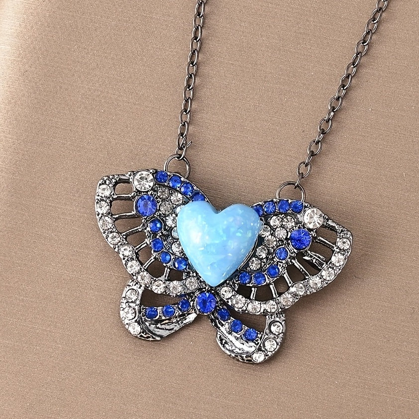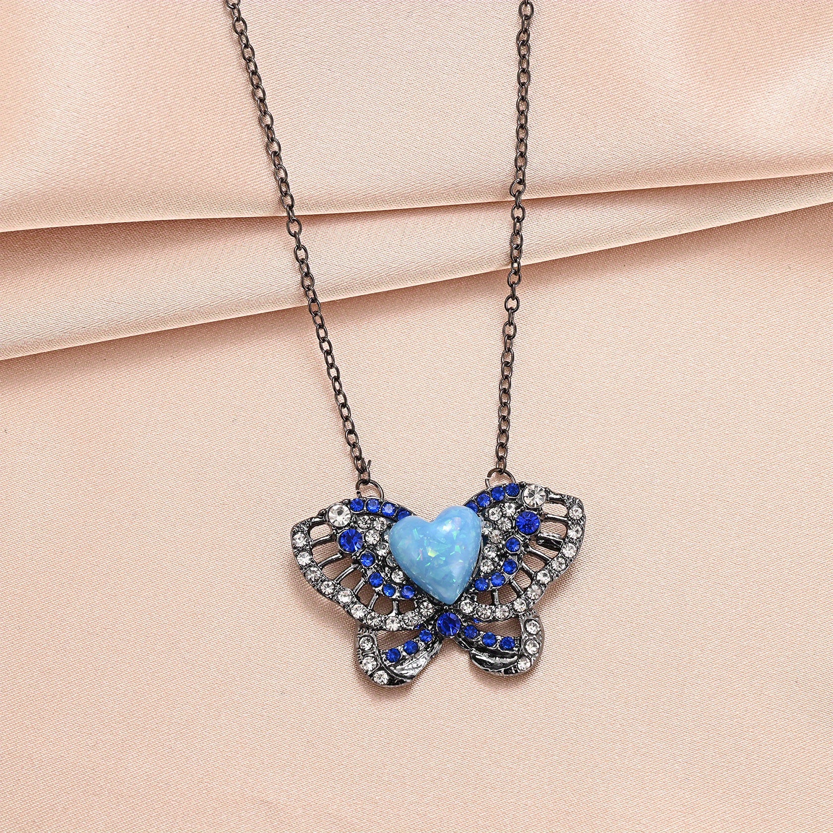This fashionable butterfly pendant necklace features rhinestones, perfect for men and women. It is a stylish bohemian accessory for parties and makes a great gift.