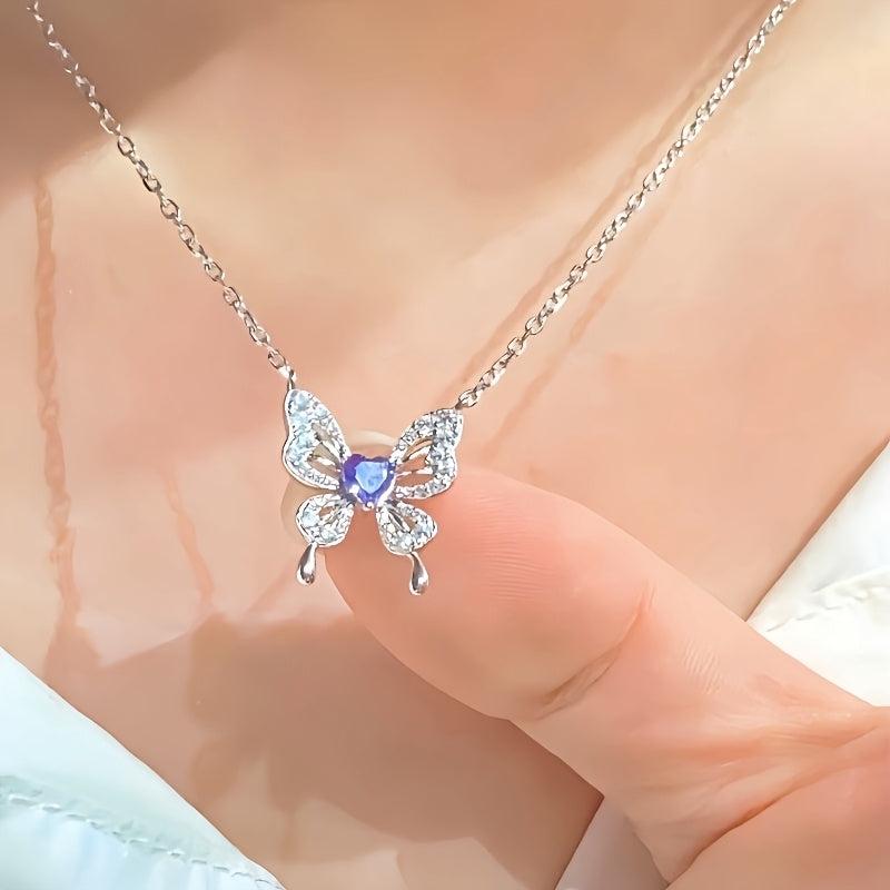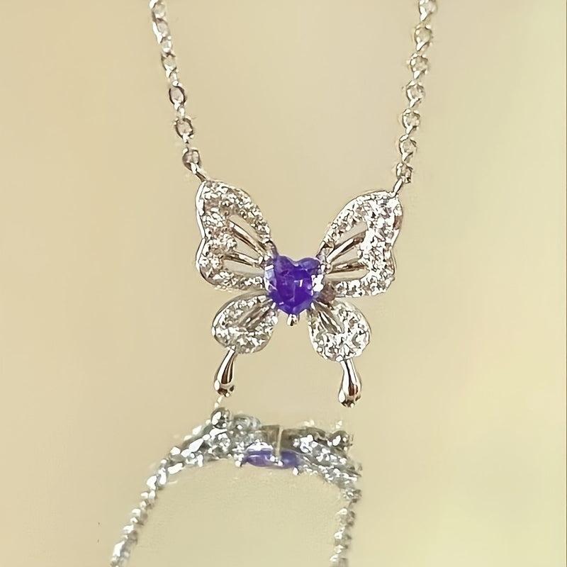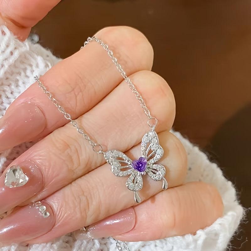 This elegant necklace features a purple butterfly pendant with rhinestone accents, ideal for adding a touch of sparkle to any outfit. Great for both special occasions and everyday wear.