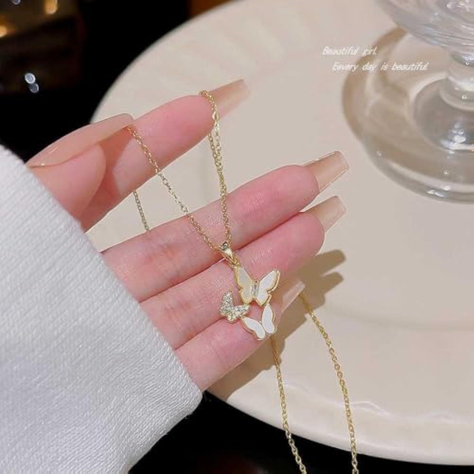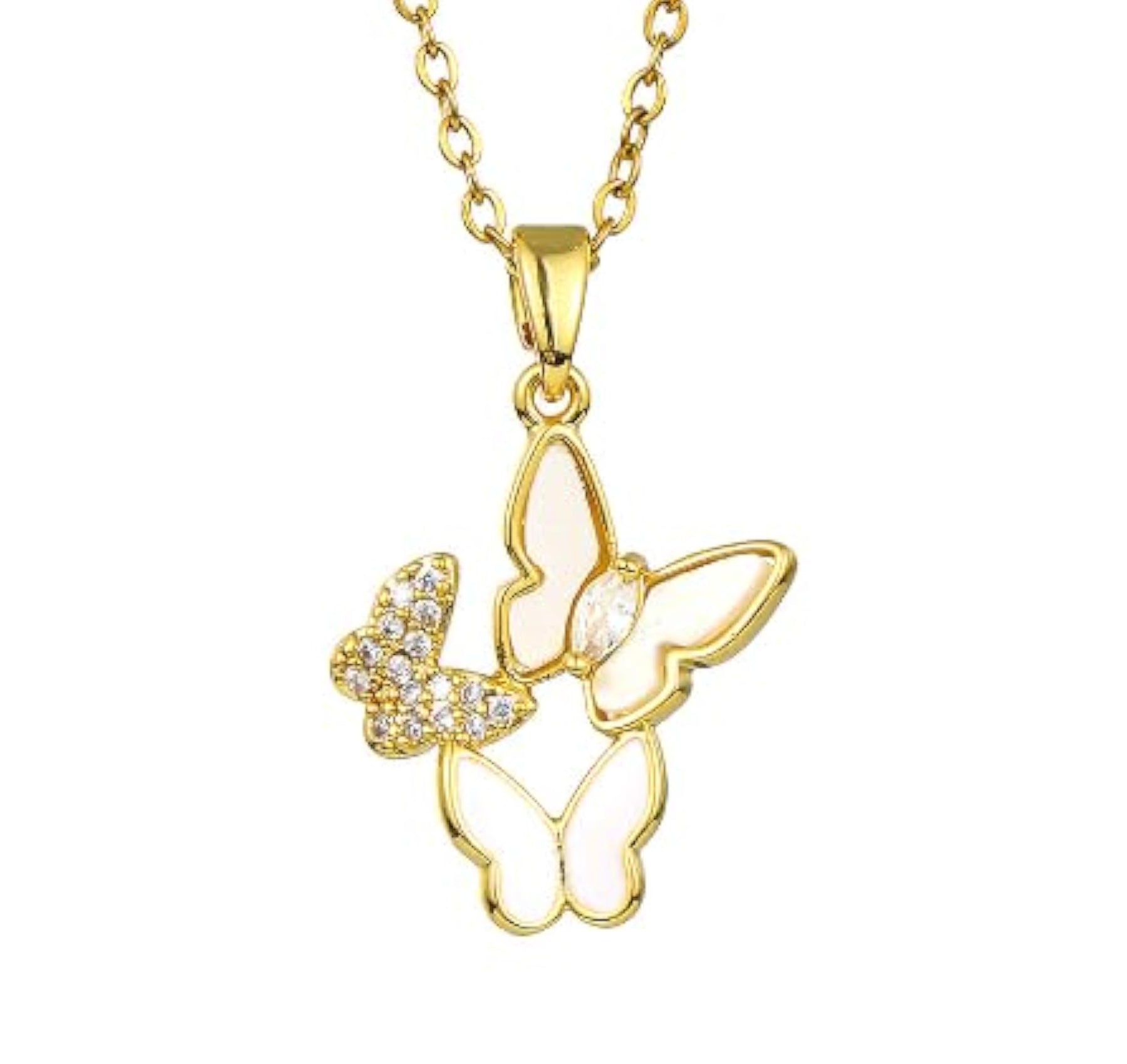This stunning necklace features a plated triple butterfly pendant with zircon stones. It makes a perfect birthday gift for your girlfriend.