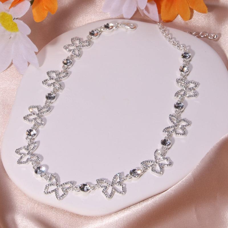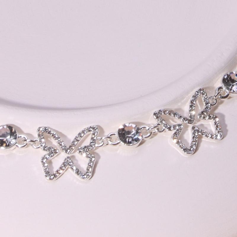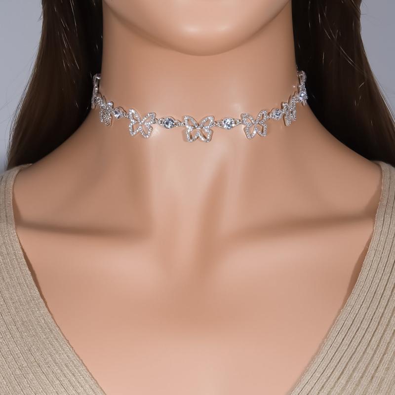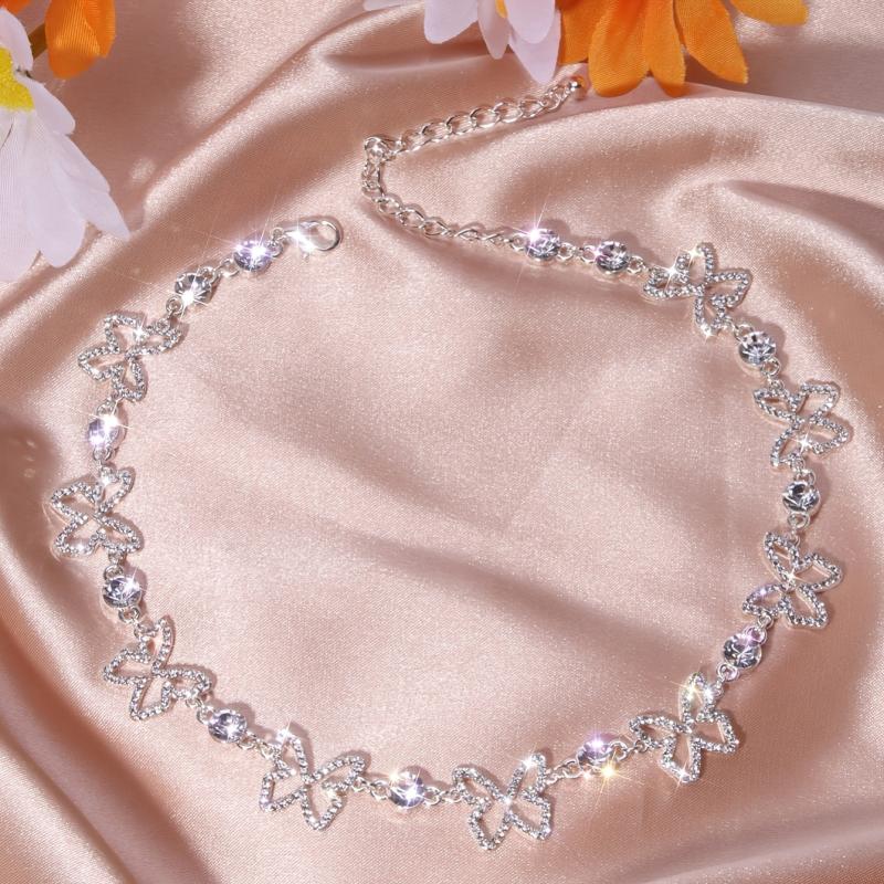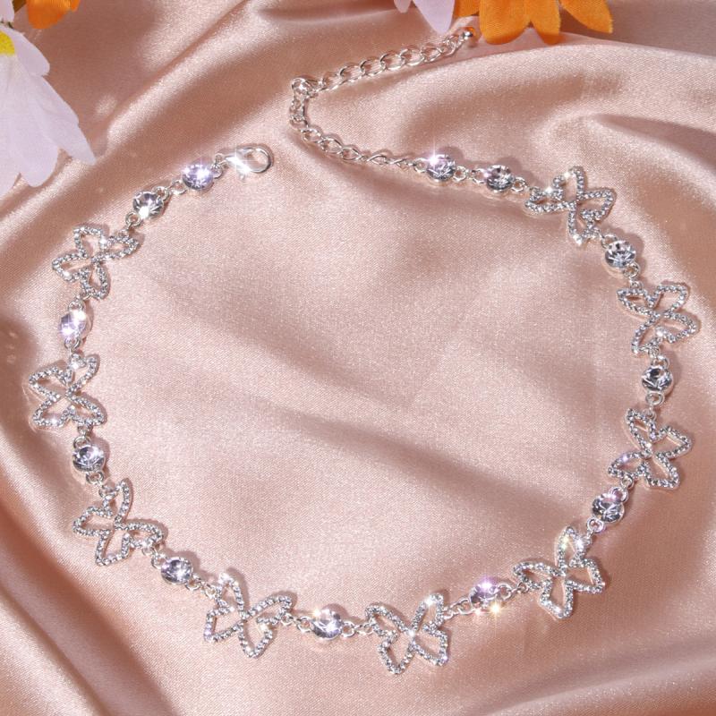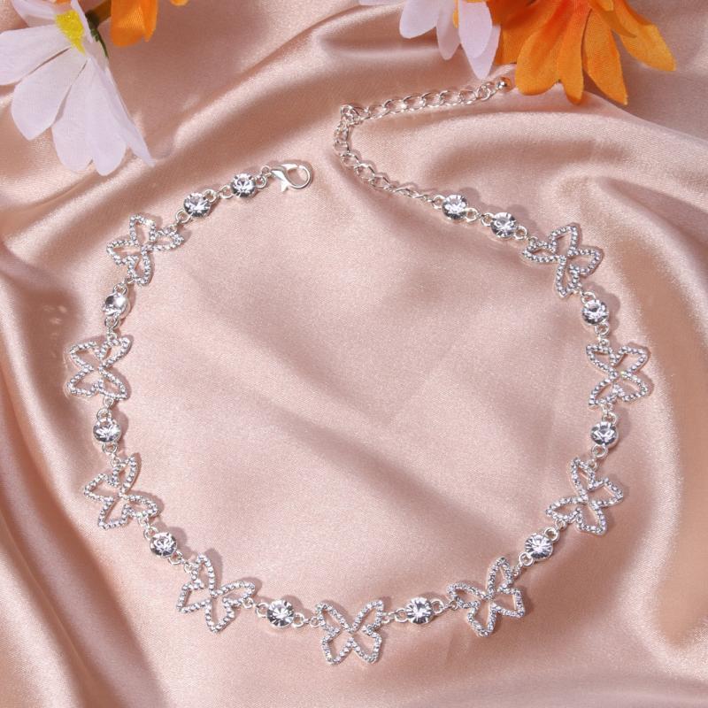 Elegant necklace featuring a butterfly pendant with sparkling rhinestones.
