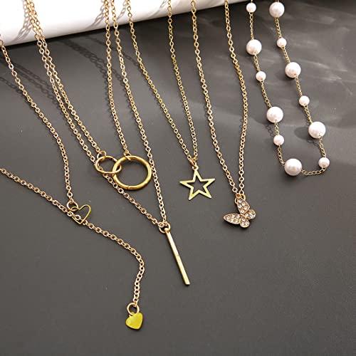 This set includes 5 beautiful necklaces featuring a contemporary design with butterfly, twin hearts, and star motifs. Perfect for any occasion.