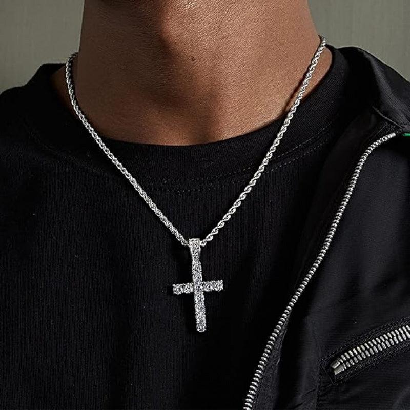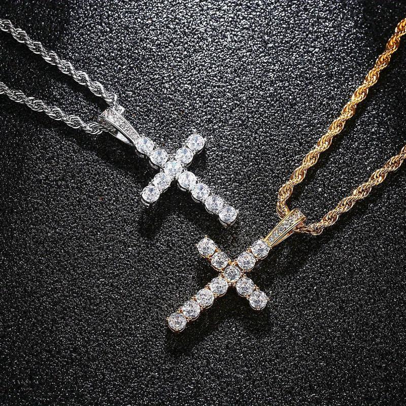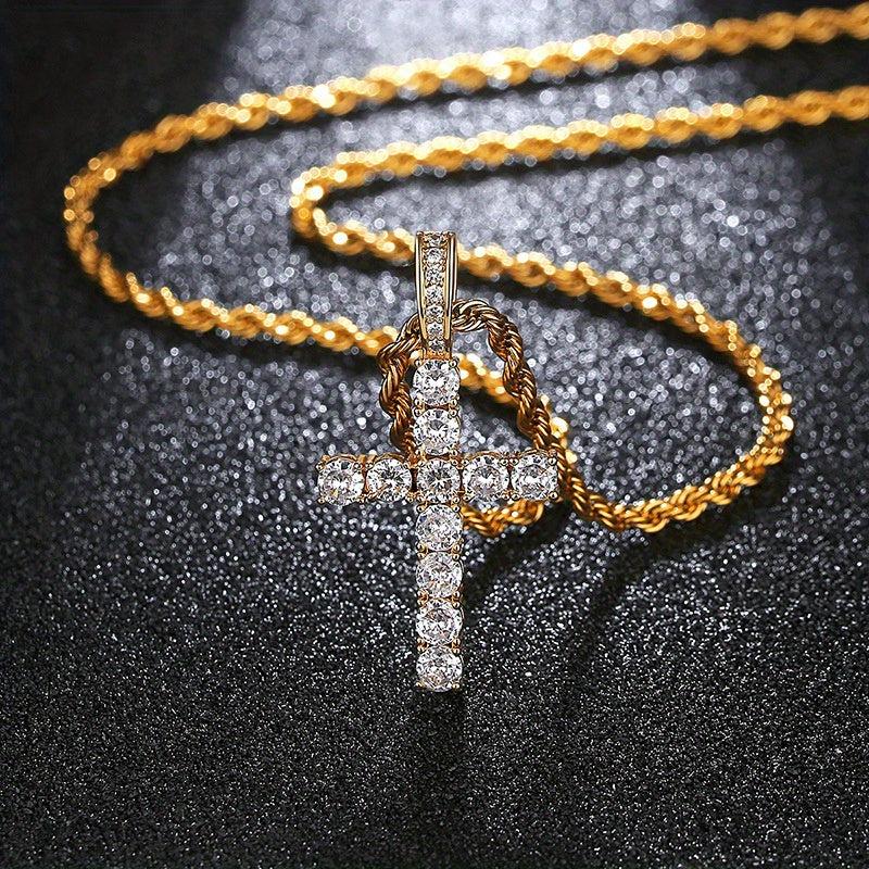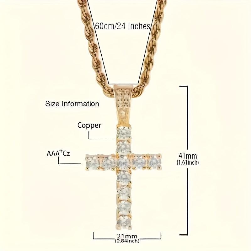 This exquisite necklace features a golden and silvery button rope cross pendant inlaid with high-quality zirconia. Perfect for weddings, anniversaries, or as a special gift for your loved one.