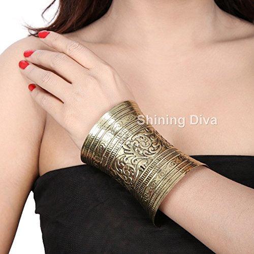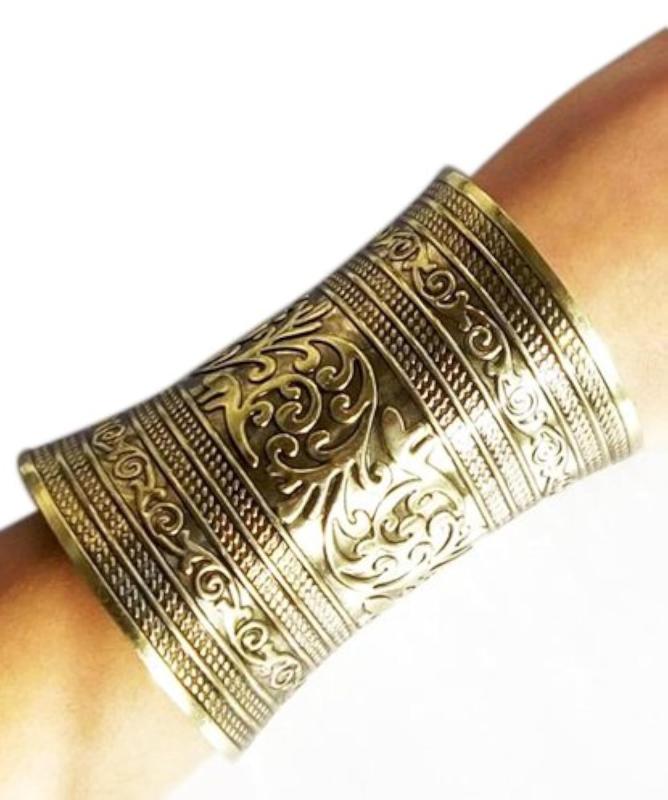 Elevate your style with this intricately carved metal cuff bracelet, designed for women.