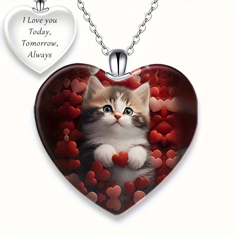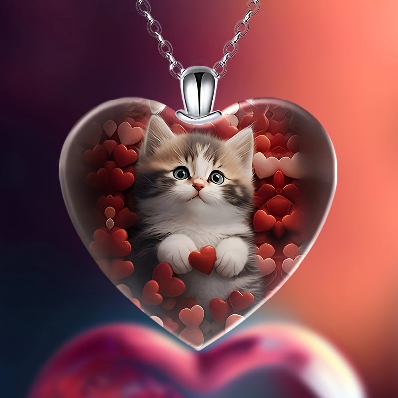 This exquisite necklace features a cat design with a heart-shaped crystal pendant, making it a perfect accessory for holiday parties and anniversary celebrations.