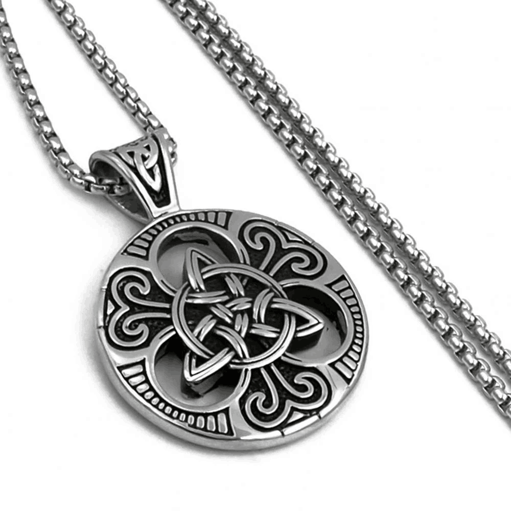 This retro Celtic knot pendant necklace is a stylish addition to any outfit. The punk amulet design adds a touch of edginess, making it perfect for men who like hip hop fashion. The necklace is a great choice for adding a unique accent to sweaters or wearing as a clavicle chain.