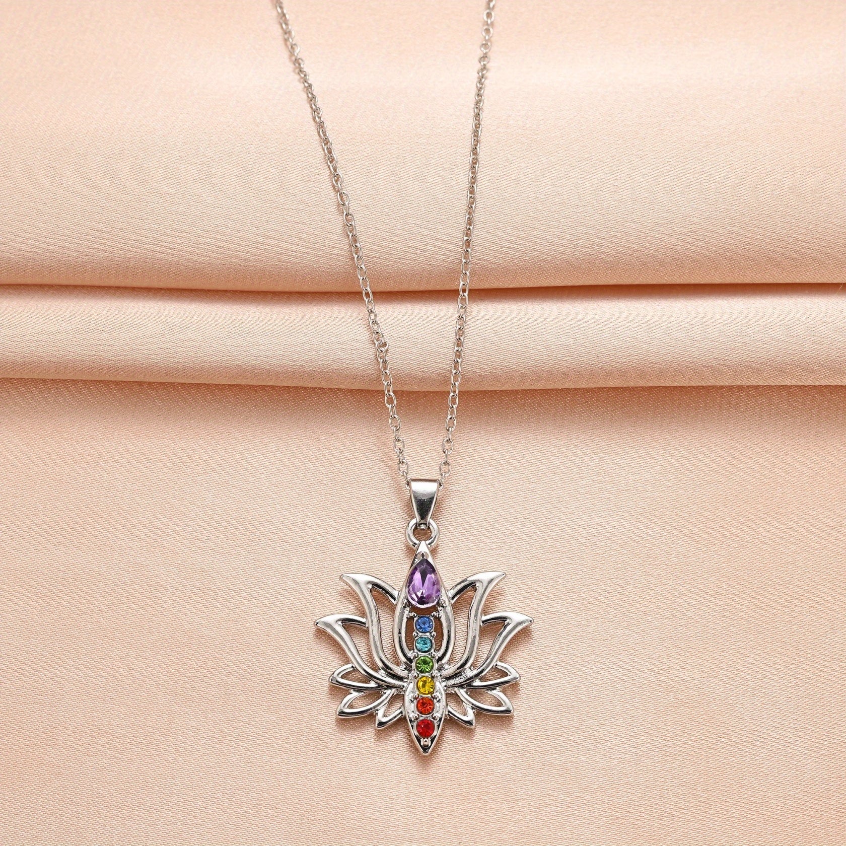 Celebrate your mother with this beautiful Chakra Lotus Pendant Necklace. It's a meaningful accessory that symbolizes balance and harmony.