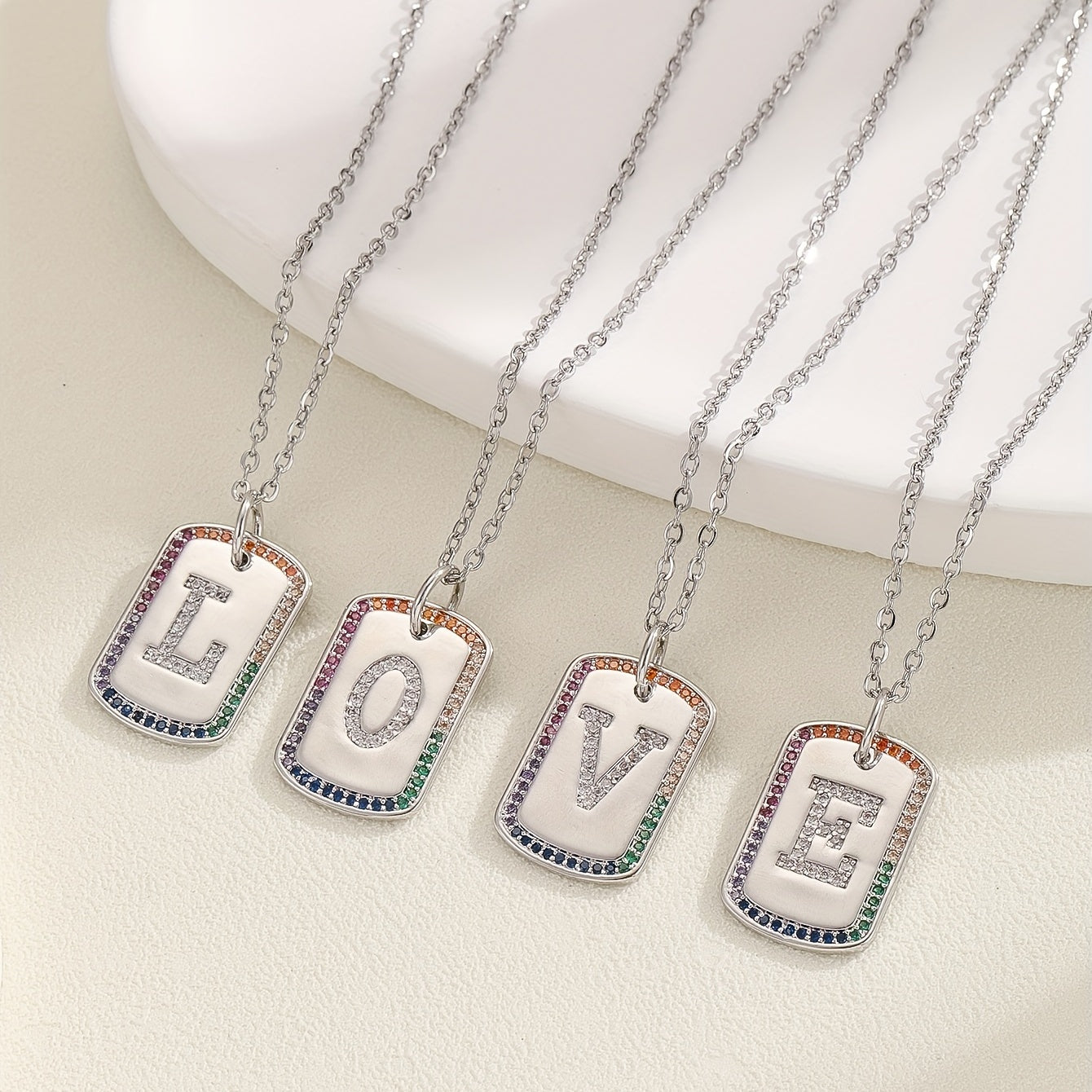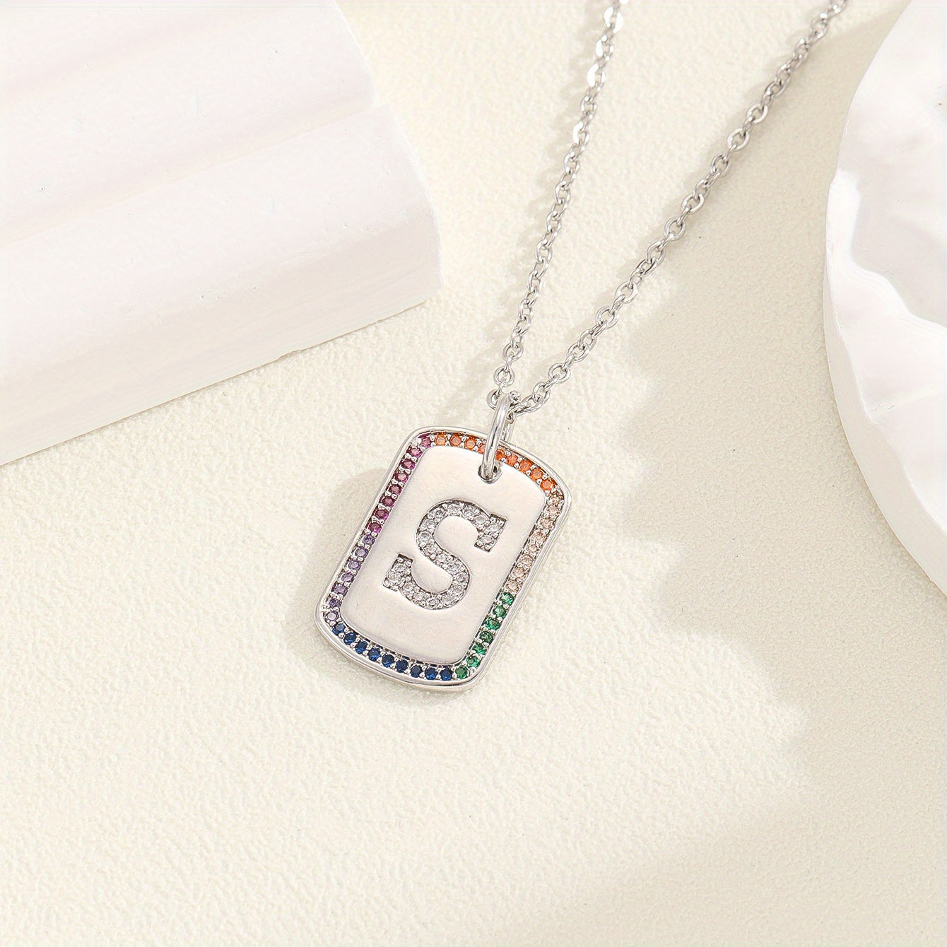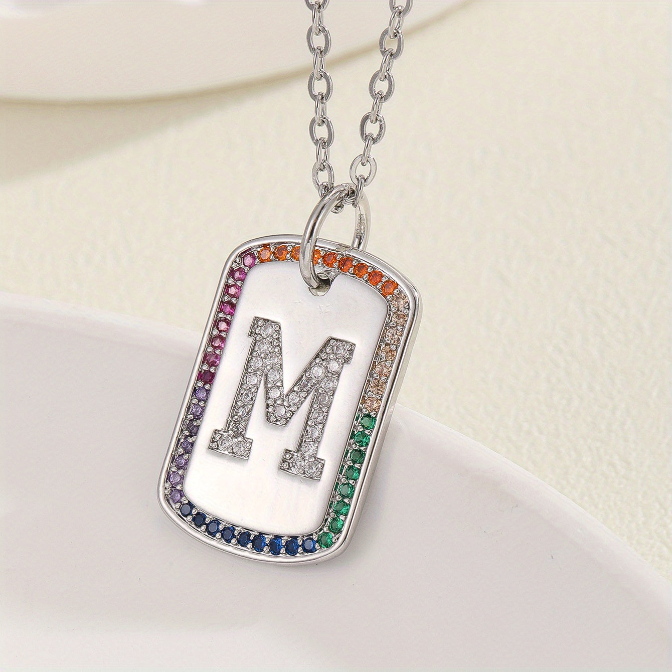 This necklace features a rectangle zircon pendant with seven chakra colors for body protection. It also includes an English initial letter pendant for a personalized touch.