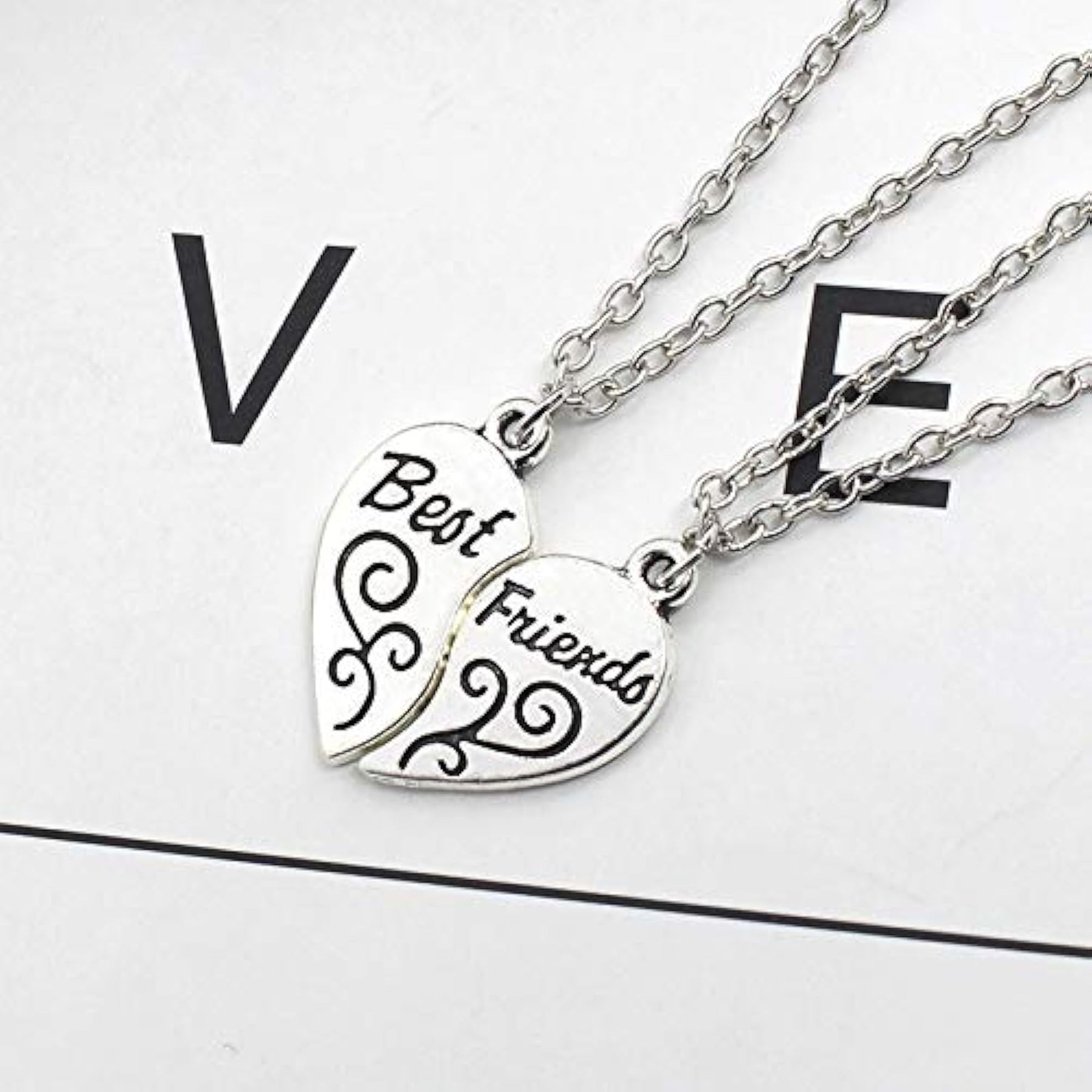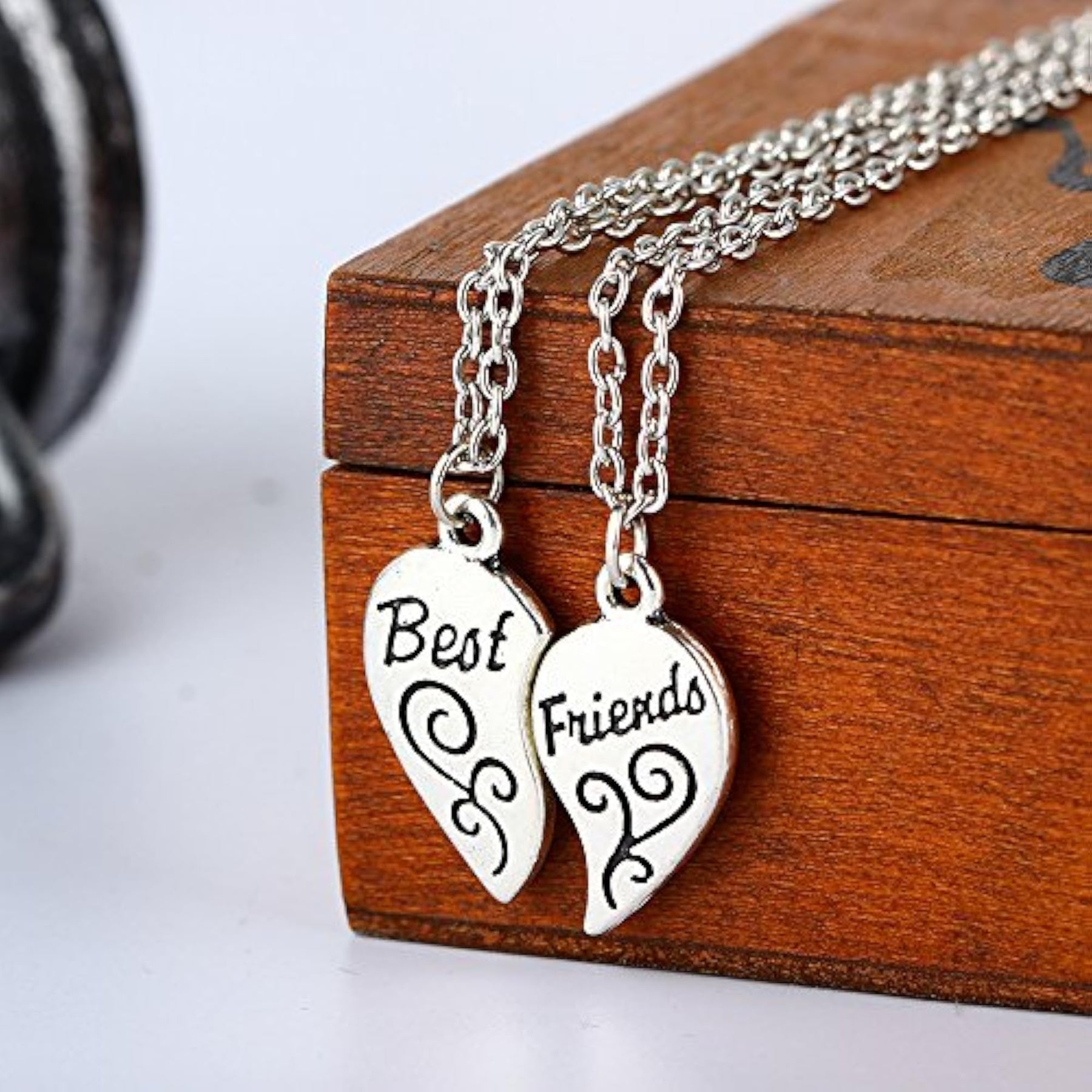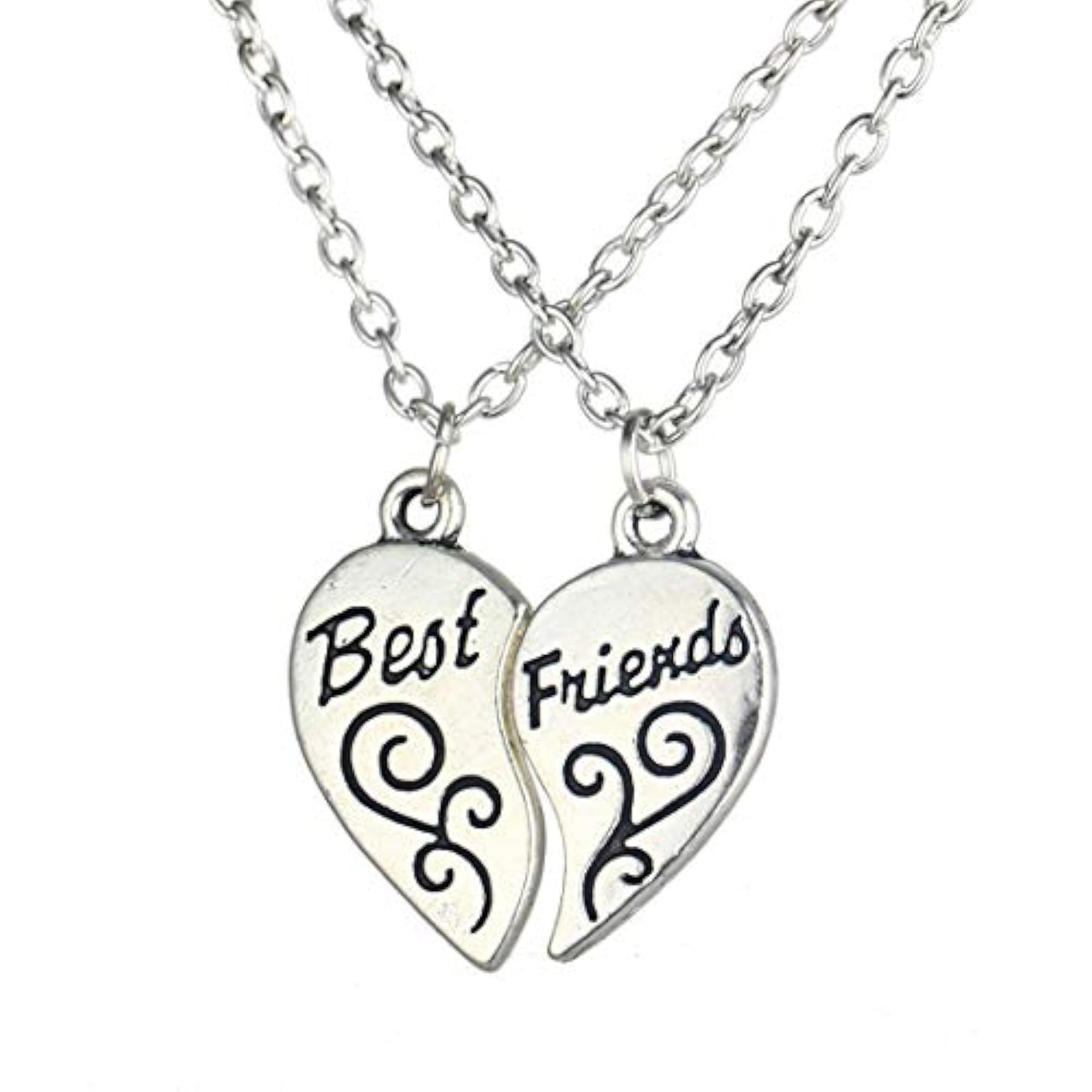 This heart locket necklace set is the perfect gift for friends to celebrate their special bond. The set includes 2 necklaces with a unique carved heart design, one for you and one for your bestie. Show your friendship with this special necklace set!