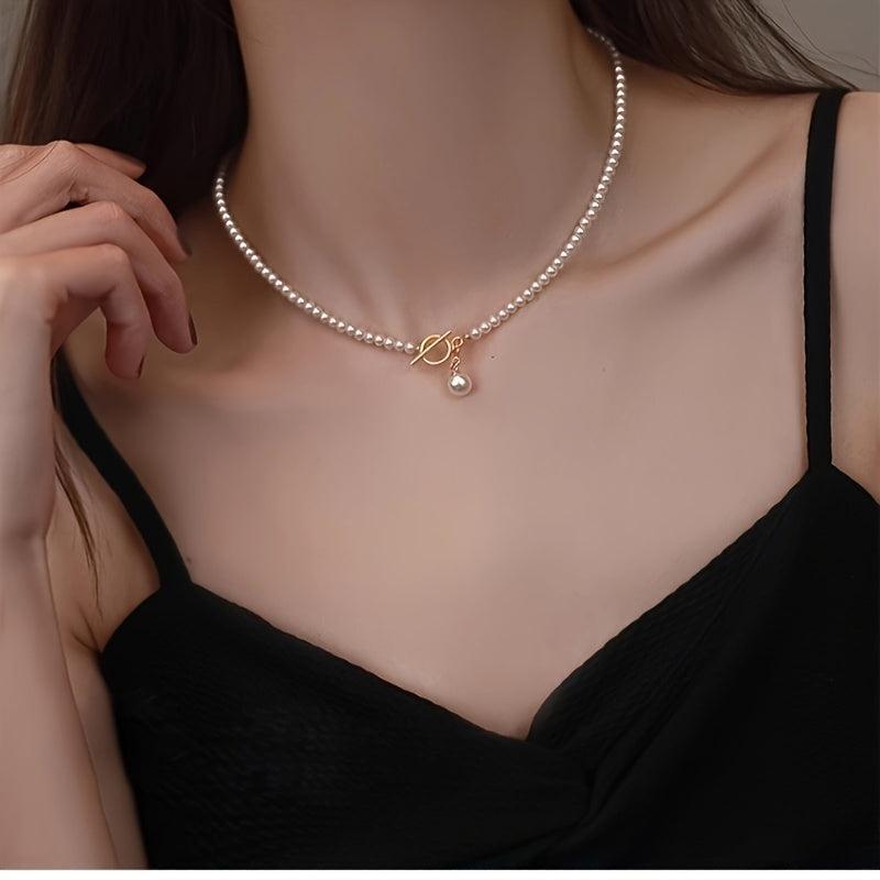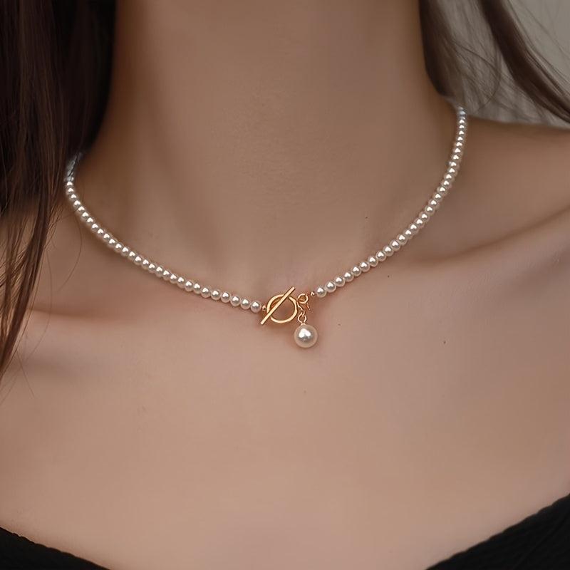 Elegant choker necklace featuring lustrous pearls, perfect for formal occasions or everyday wear.