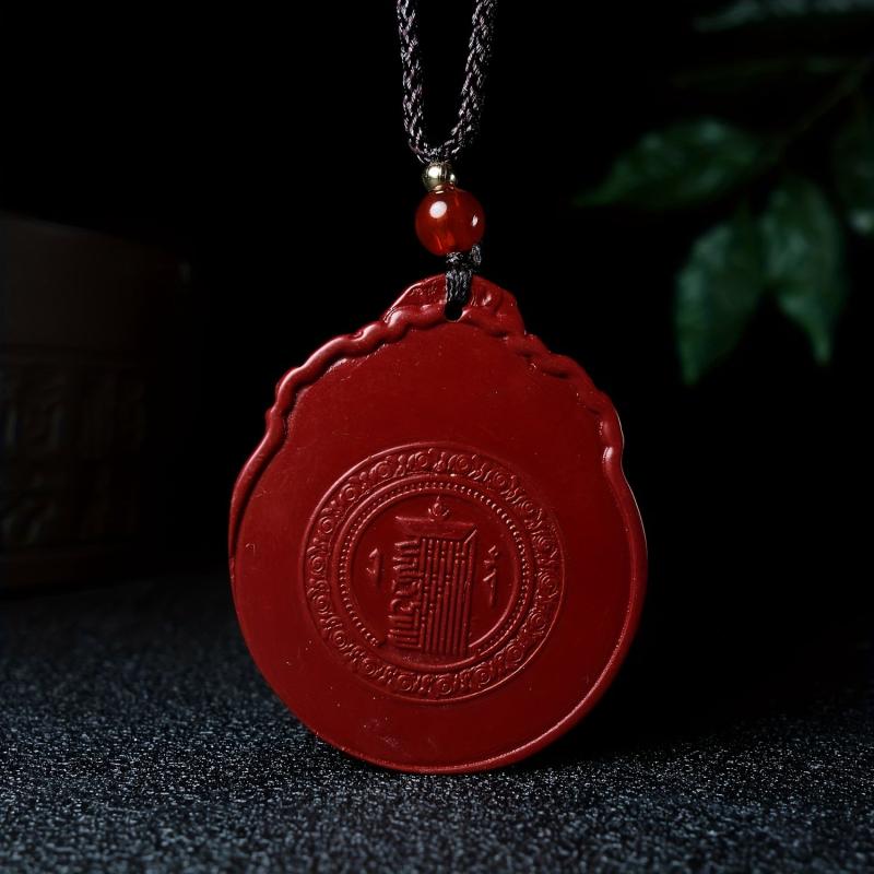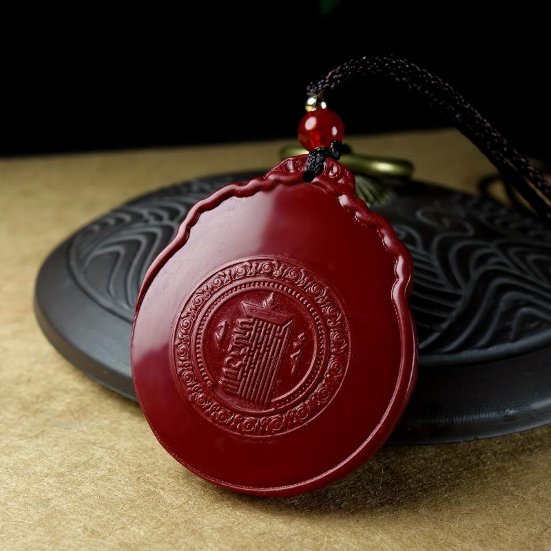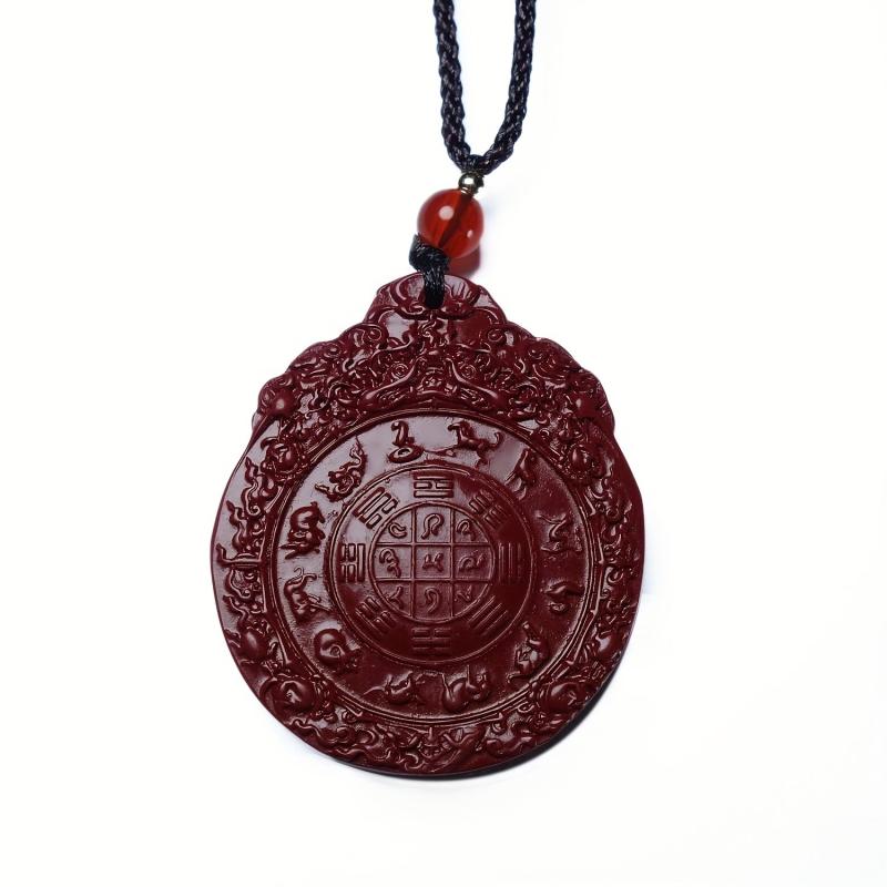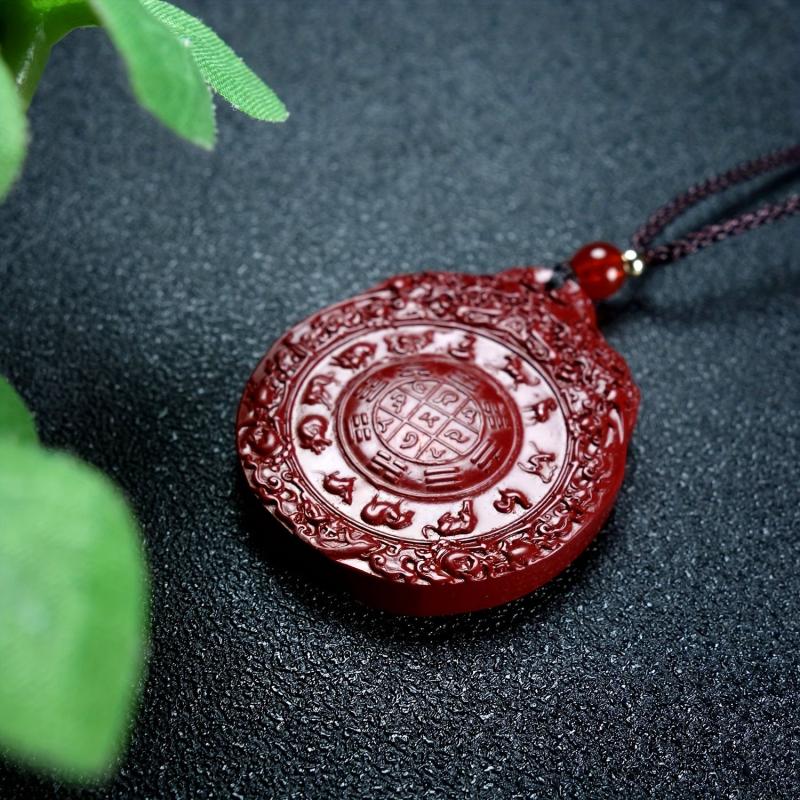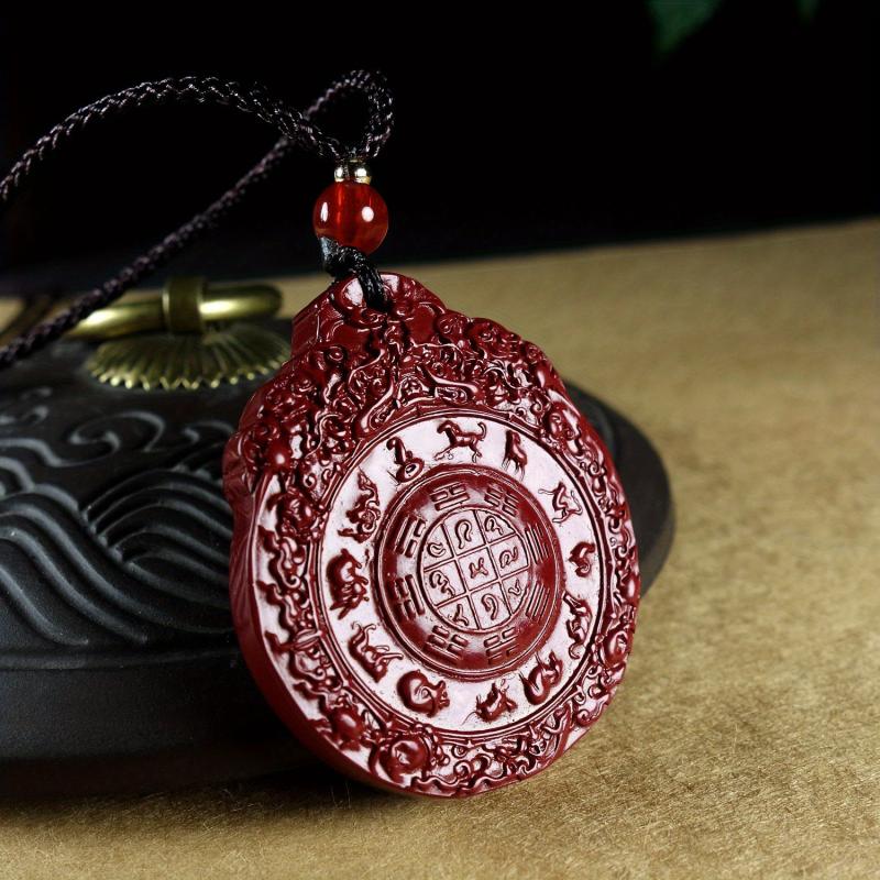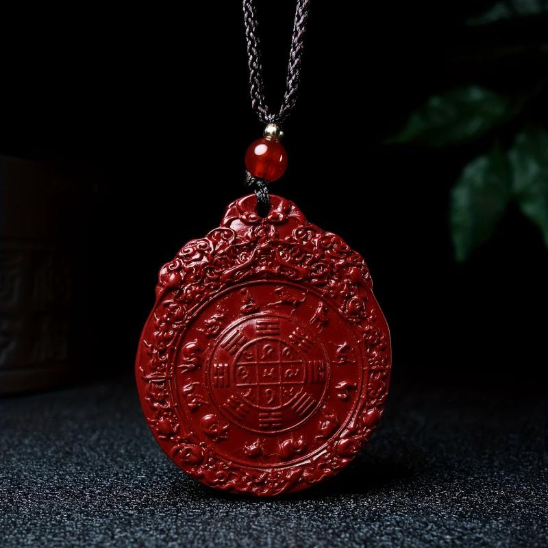 Enhance your wealth attraction with this Cinnabar pendant necklace featuring the Eight Trigrams. Made from synthetic stone, this accessory is perfect for men.