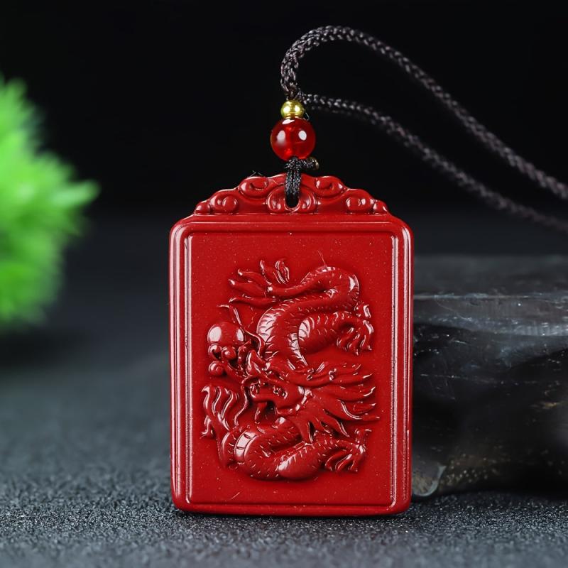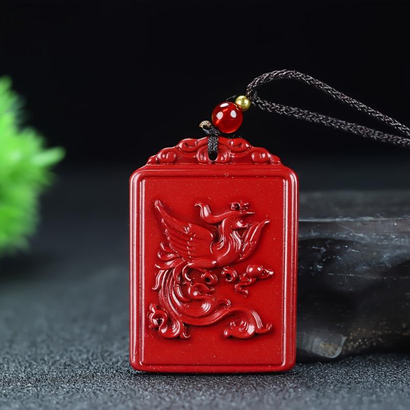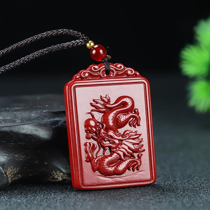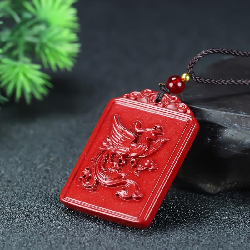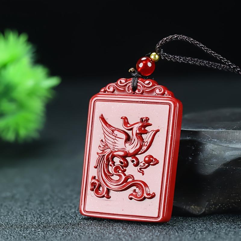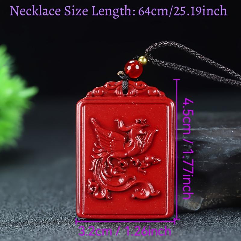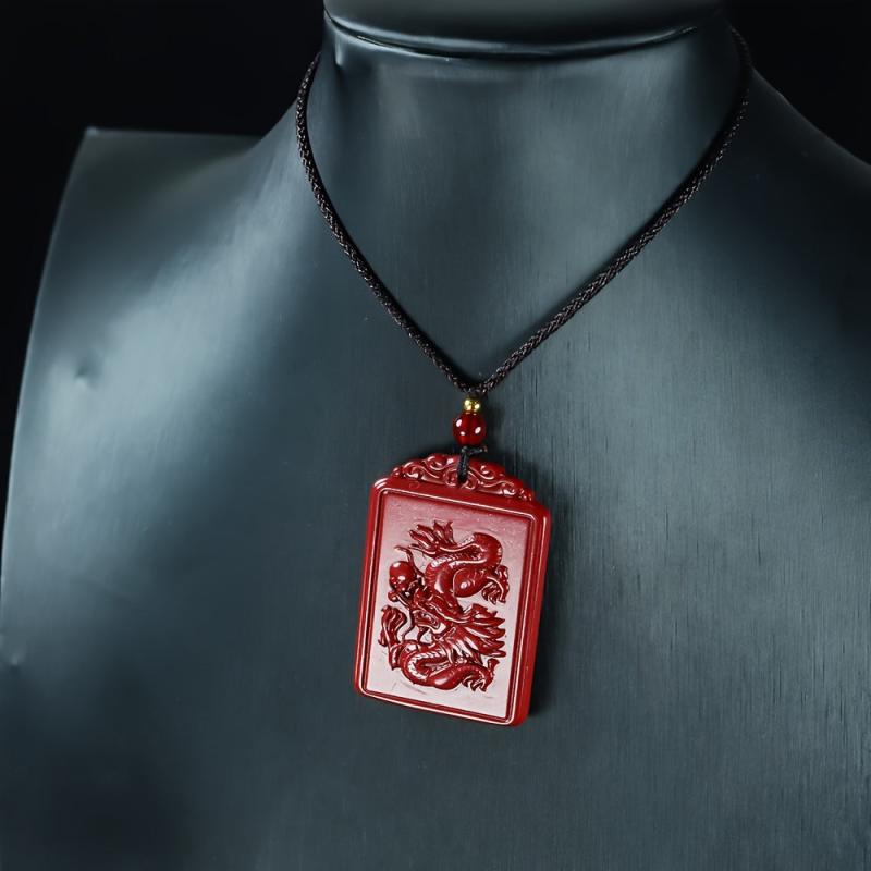 Enhance your style with this traditional cinnabar dragon and phoenix pendant necklace. The red Zisha stone amulet features intricate carvings suitable for daily wear for both men and women.
