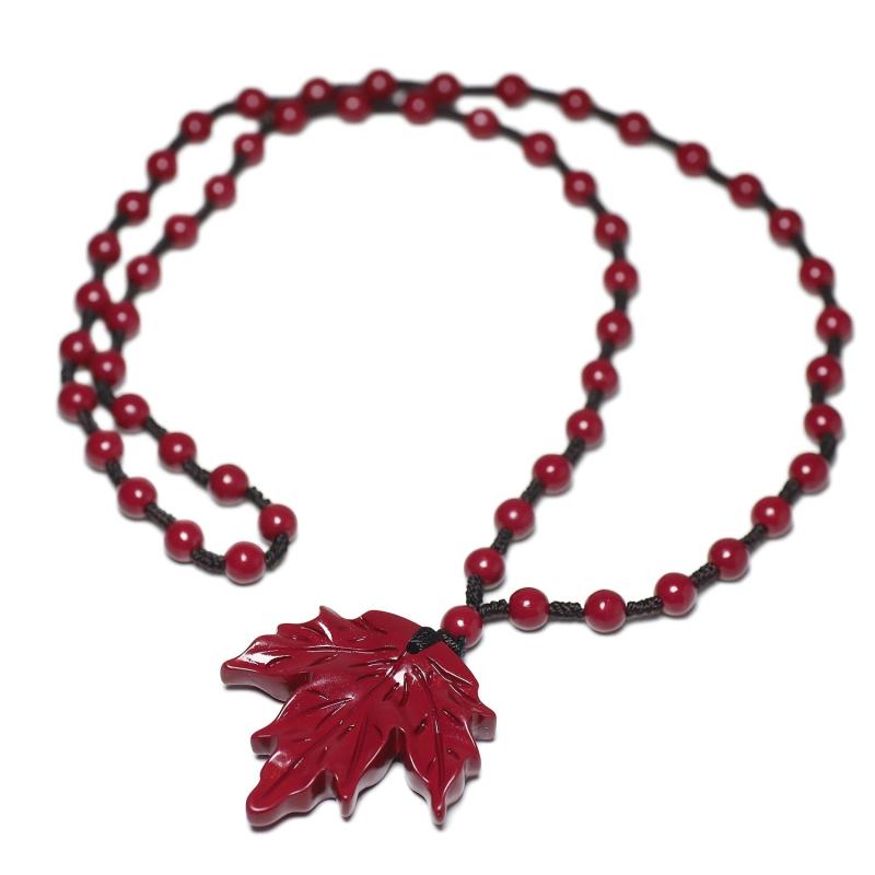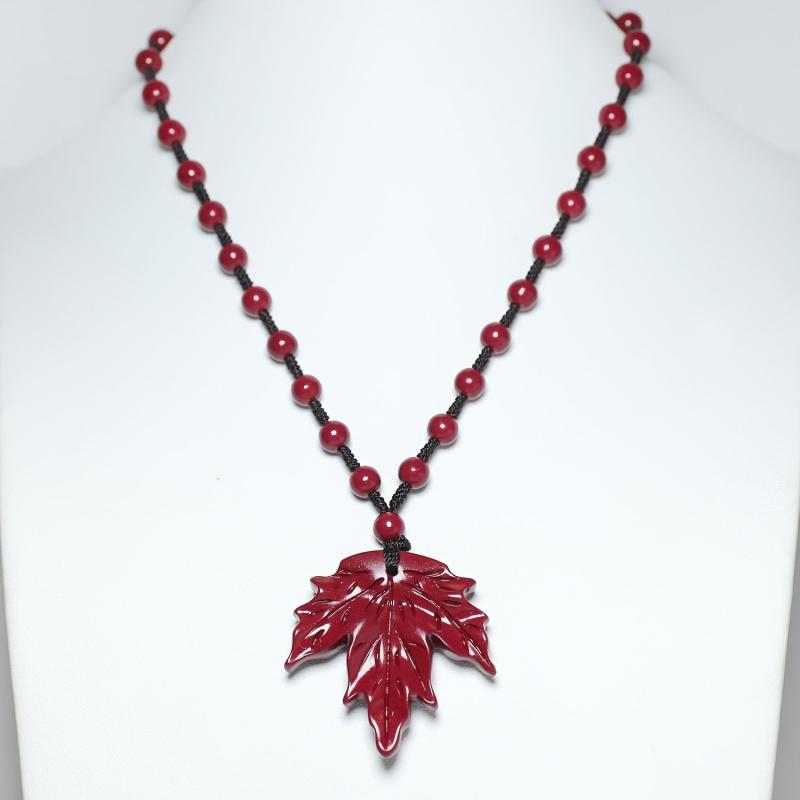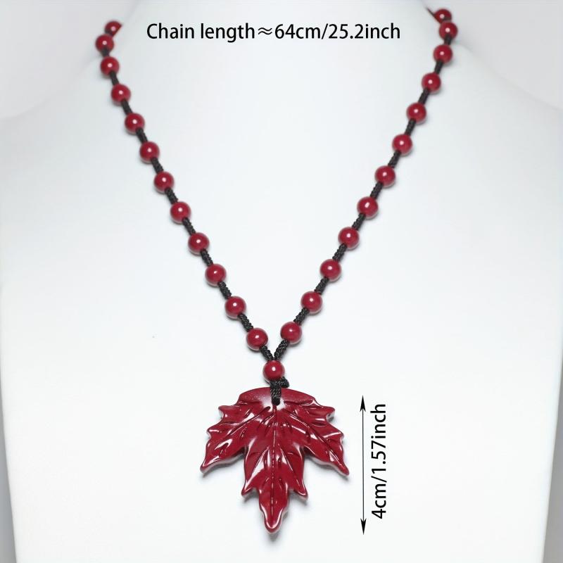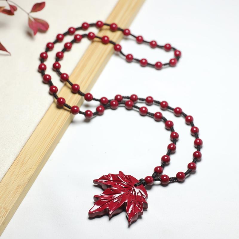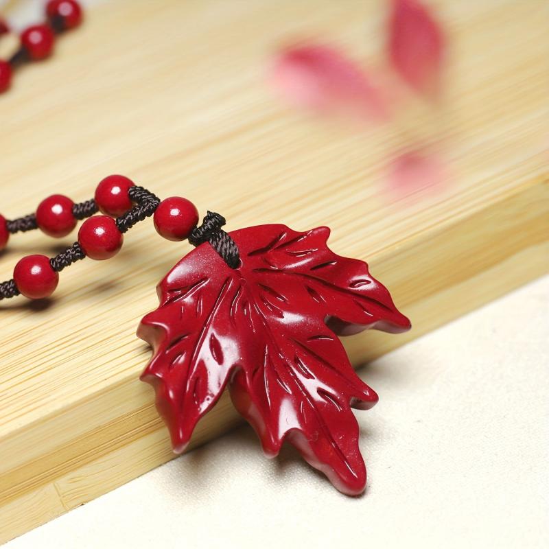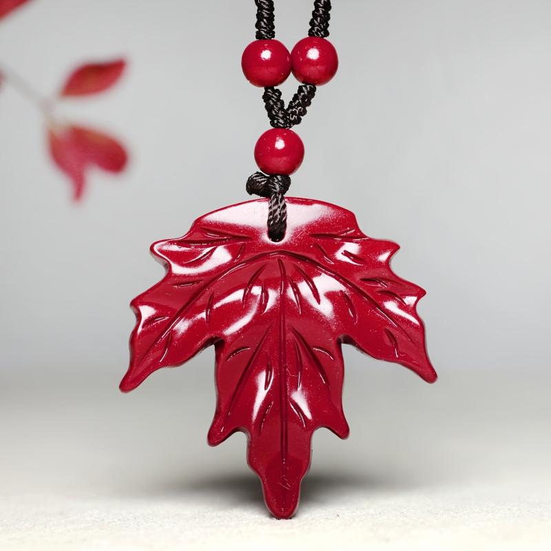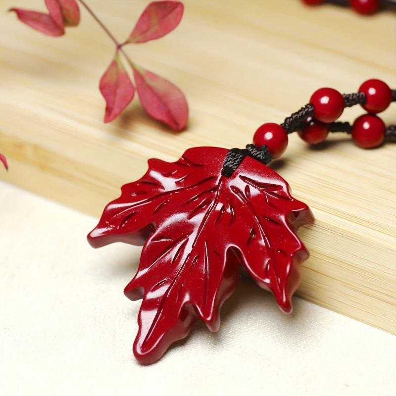 BULVEGEMET presents a handcrafted cinnabar stone maple leaf pendant necklace, perfect for Christmas holiday gifts. This unique piece symbolizes good fortune for couples.