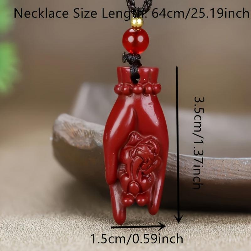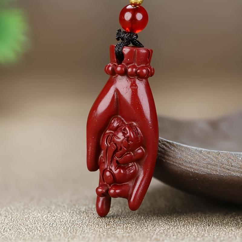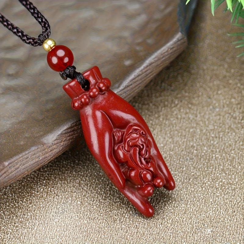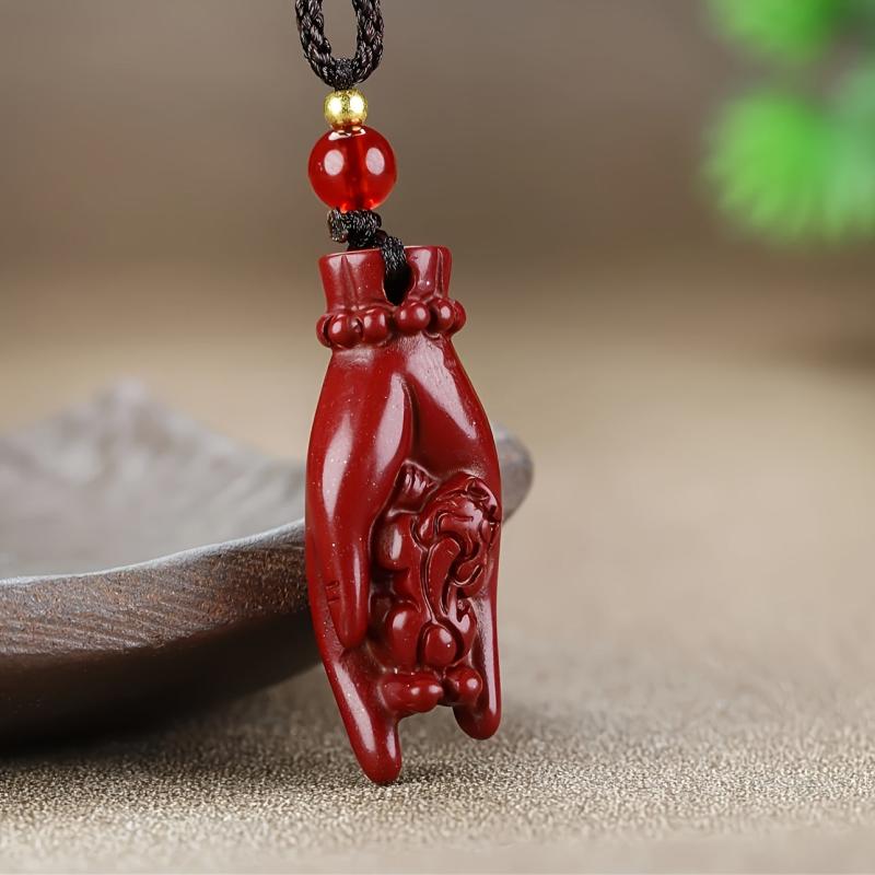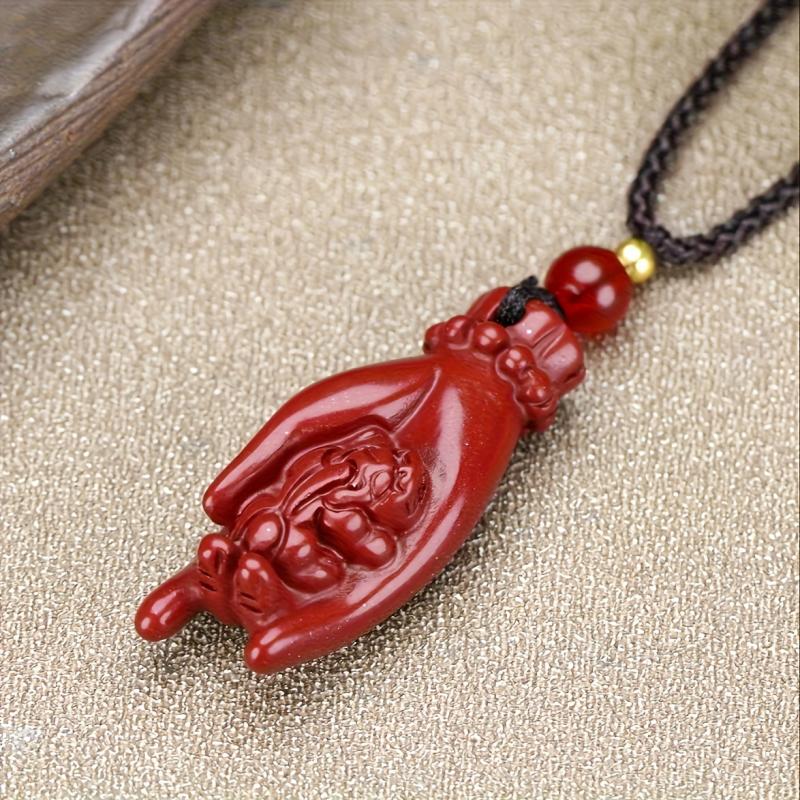 This high content cinnabar pendant necklace is a lucky charm for both men and women. It features a wealth character design that symbolizes prosperity and good fortune in the Chinese culture.