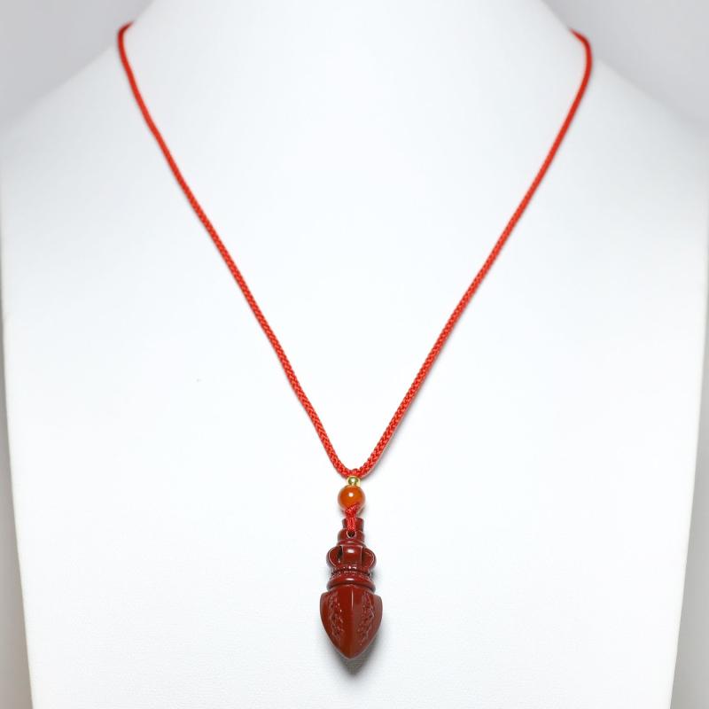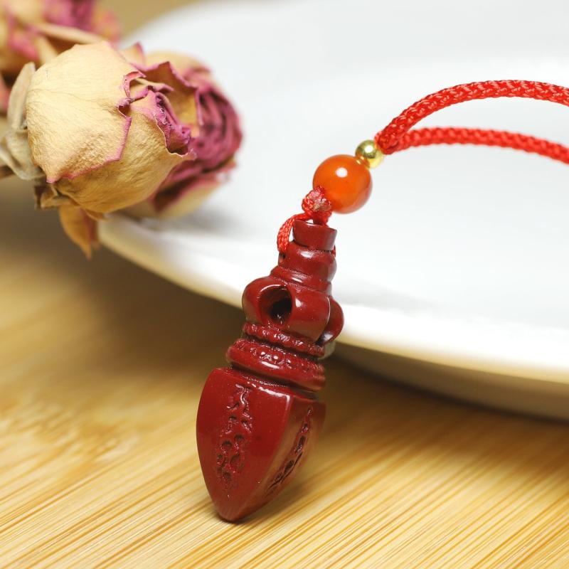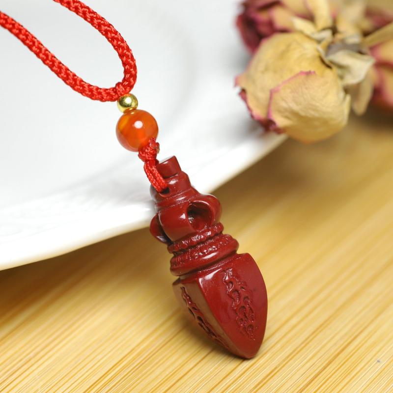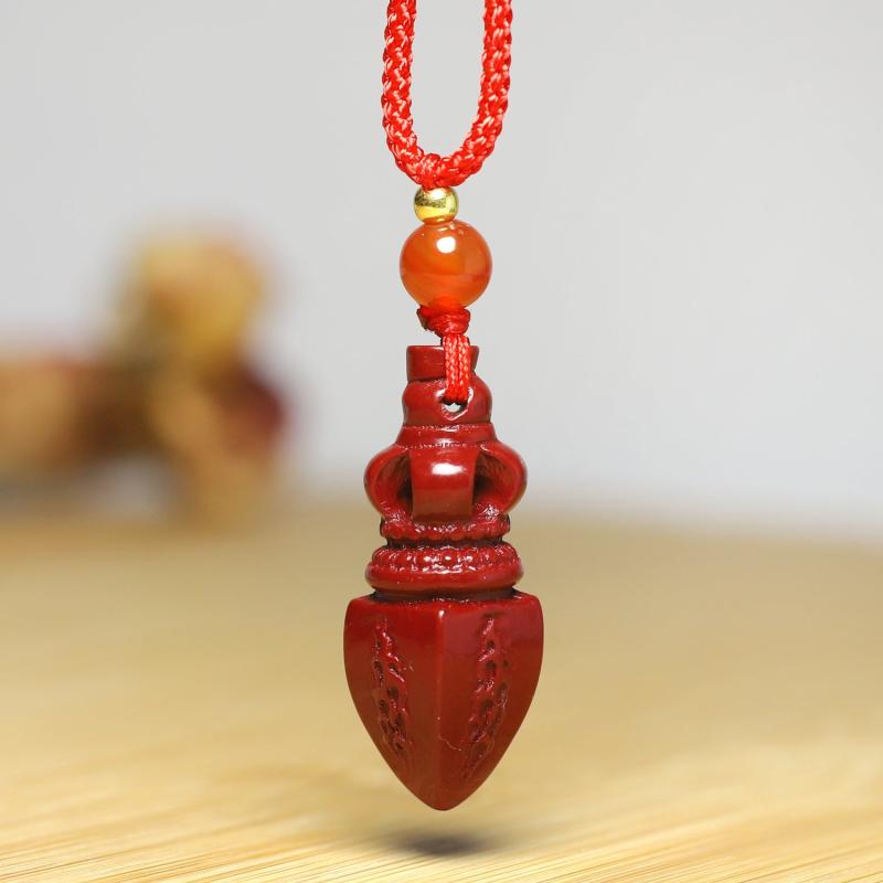 Elegant and stylish Cinnabar Vajra pendant necklace that brings good luck and prosperity. Perfect accessory for parties and banquets, or as a gift for business success. Enhance your luck with the power of wind and water.