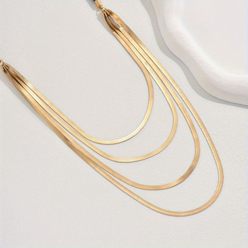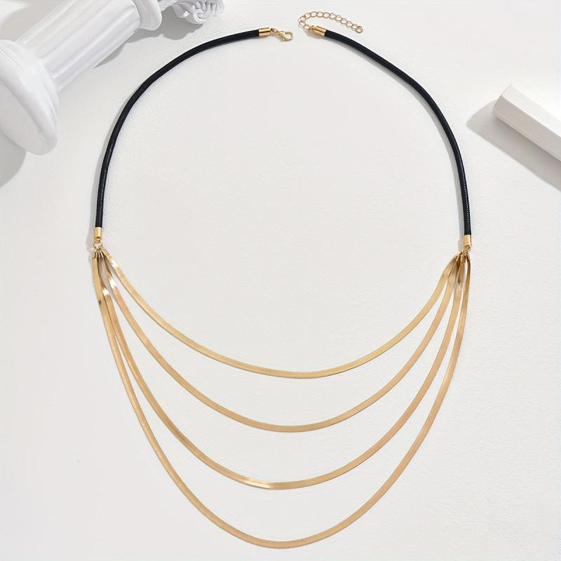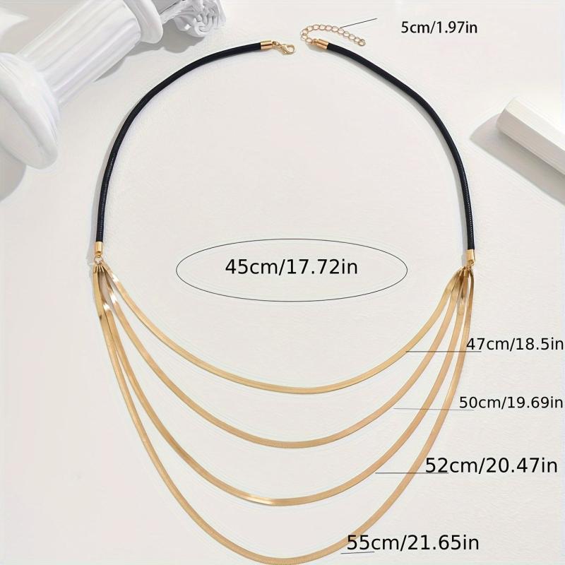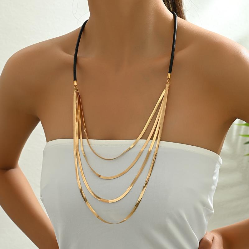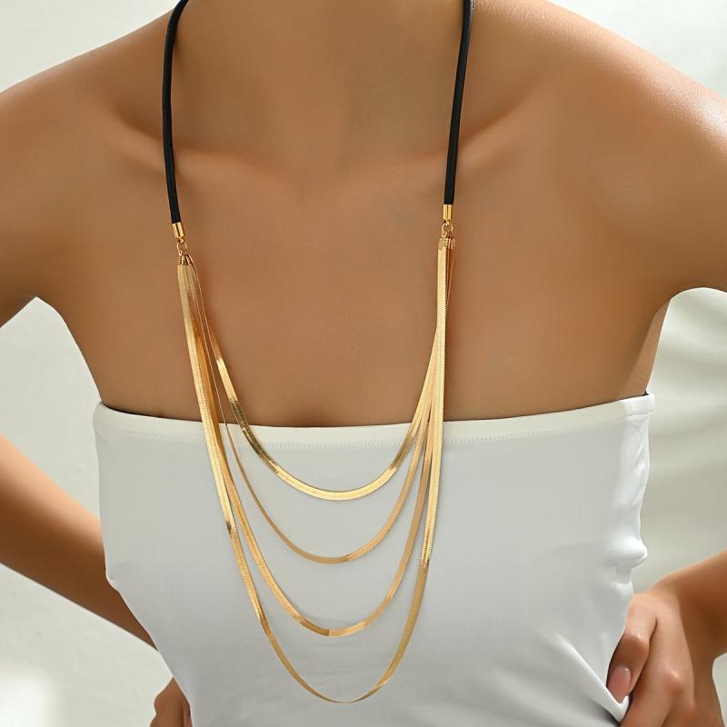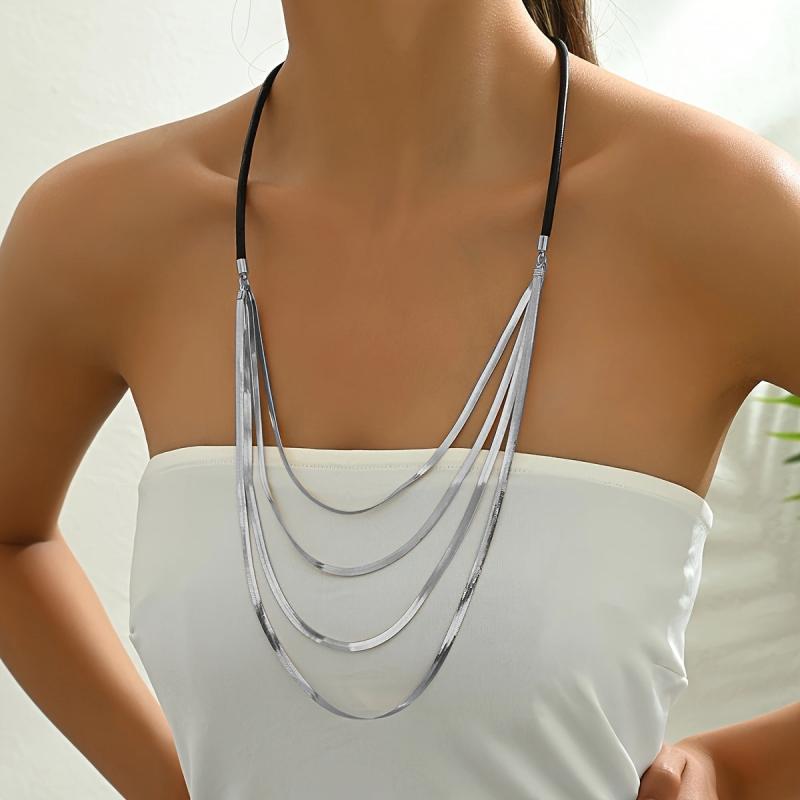 Elevate your style with this long necklace featuring a classic snake skin chain mixed with leather.