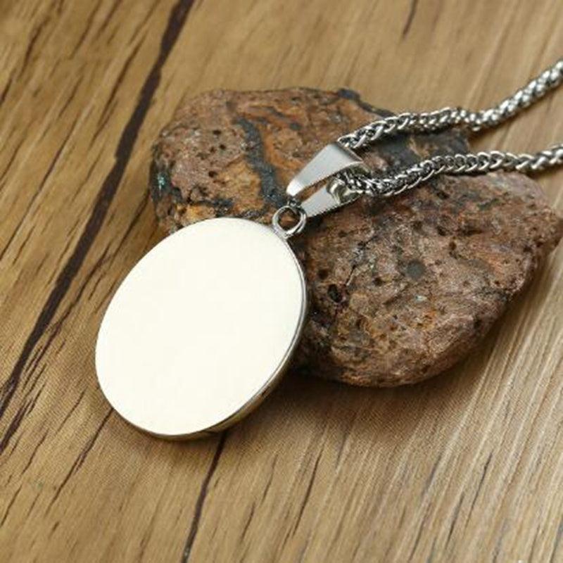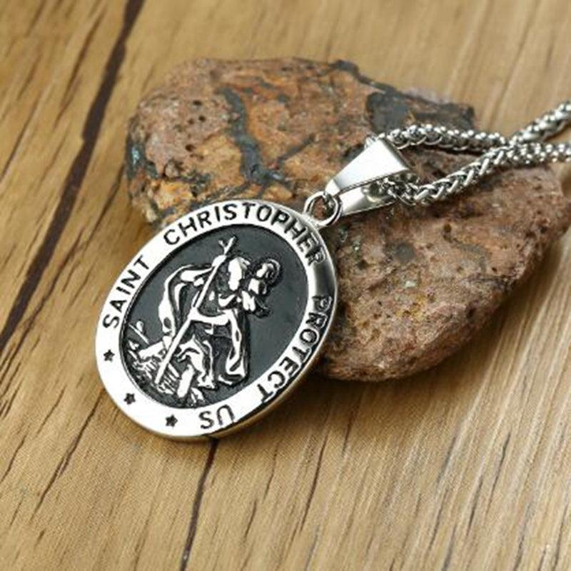 This classic St Benedict pendant necklace is a religious amulet that features an intricate design. It is a meaningful and stylish accessory for men.