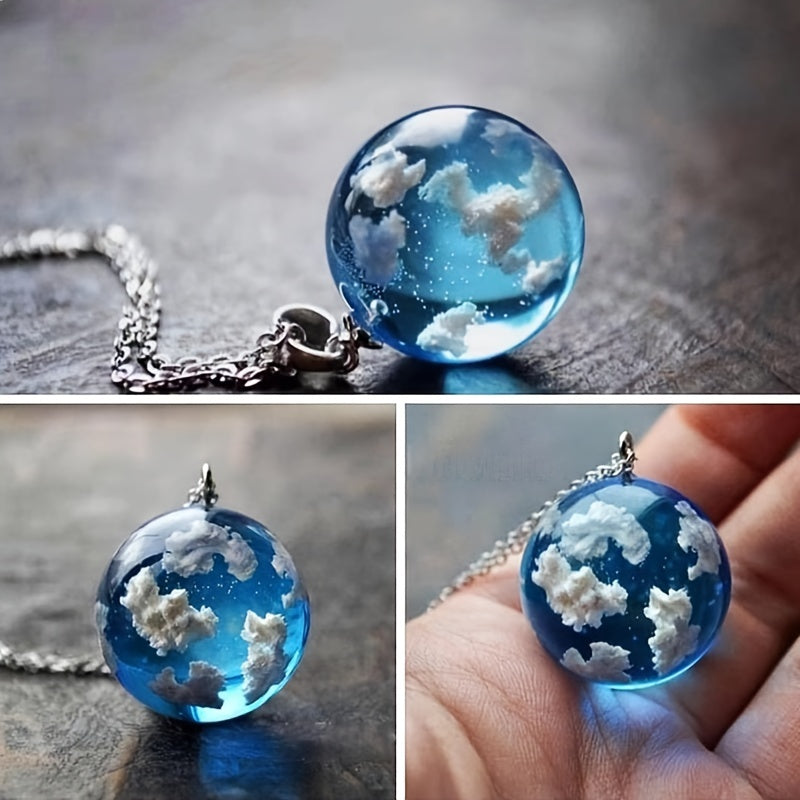 Beautiful round pendant necklace featuring a clear sky and clouds design, perfect for both men and women.