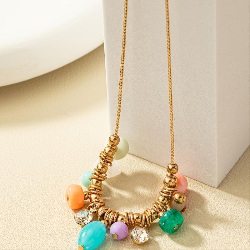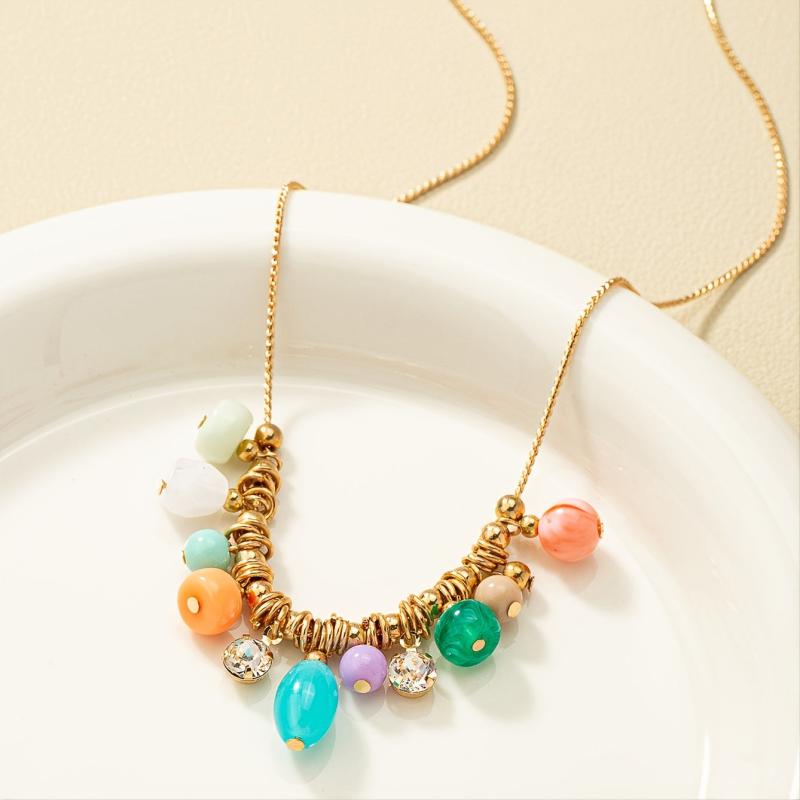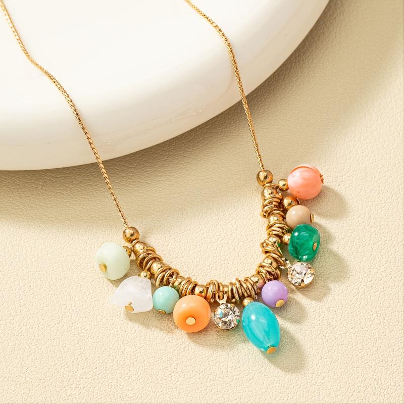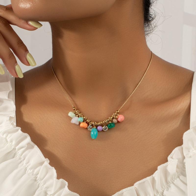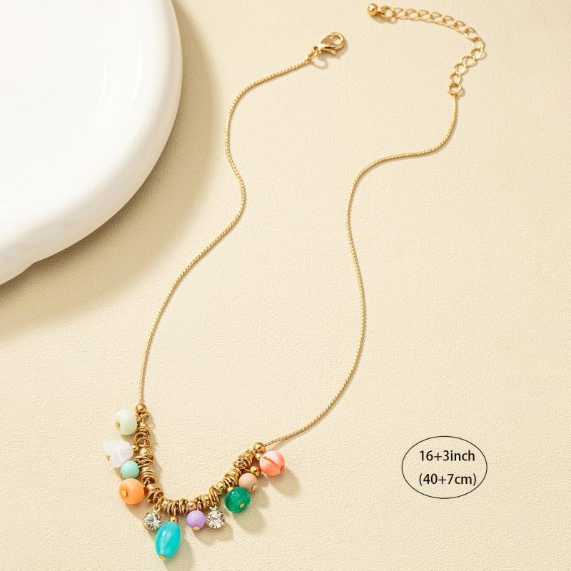Add a pop of color to your outfit with this Bohemian bead necklace. Perfect for a boho chic look, this clavicle chain will enhance your style and make a statement wherever you go.