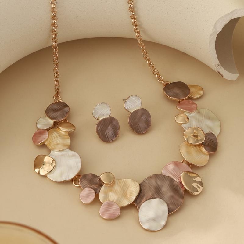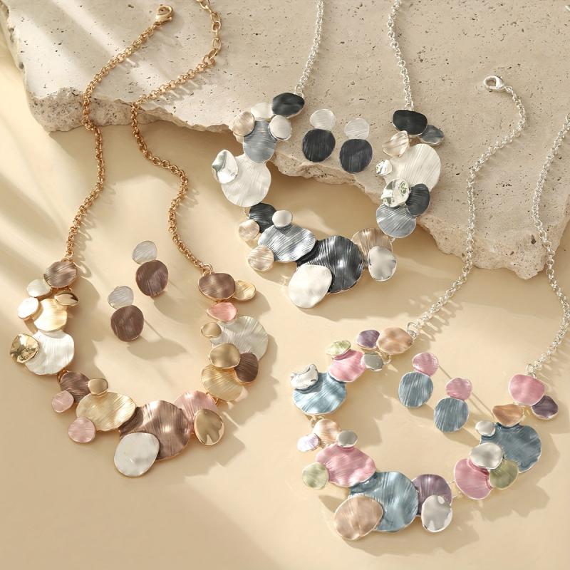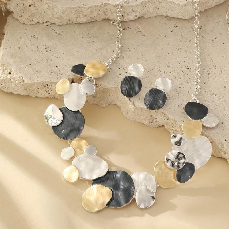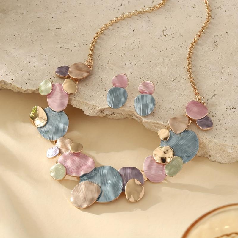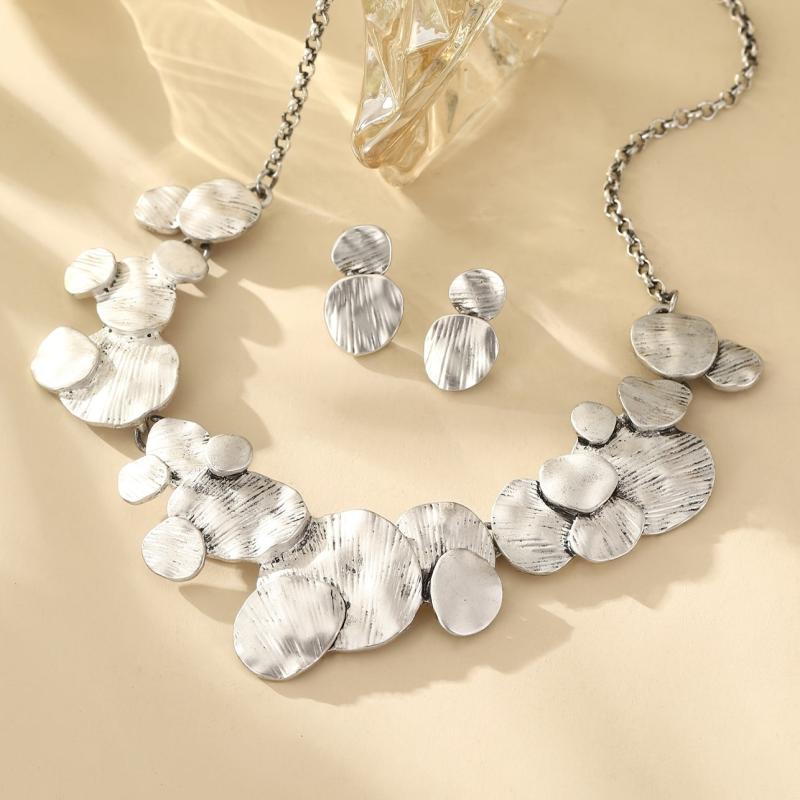 Complete your bohemian spring and summer look with this vintage jewelry set. Made of zinc alloy, the set includes a necklace and two earrings.