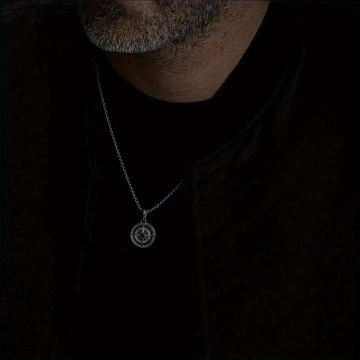This compass necklace is a stylish retro hip hop accessory for men. It features a detailed compass design that adds a unique touch to any outfit.